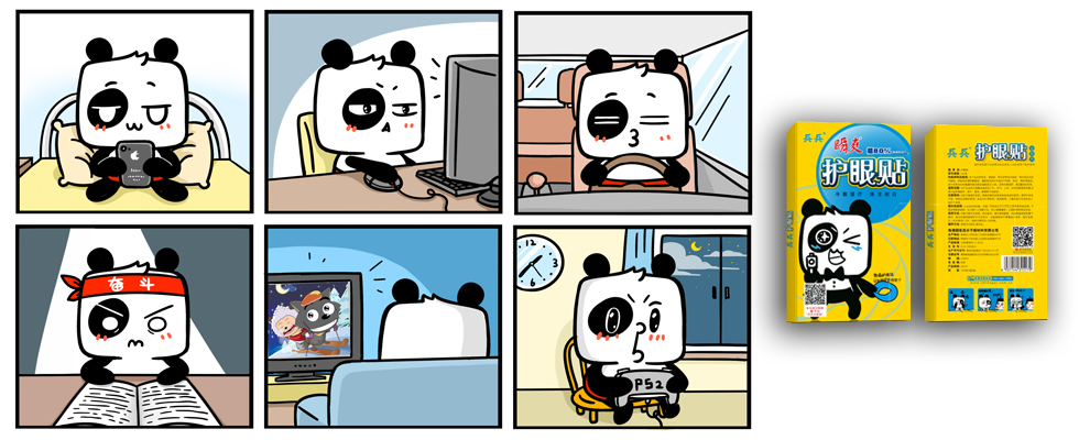 項(xiàng)目背景:瞬爽護(hù)眼貼與醒腦貼,針對(duì)兒童與上班族量身定做,用于保護(hù)眼睛與緩解疲勞,起到非常有益的作用。熊貓形象可愛易親近,與兵兵品牌兒童形象相呼應(yīng),其時(shí)尚與可愛的畫風(fēng),更能吸引孩子與年輕人的駐足。在包裝中,用色明艷大膽,卡通形象重點(diǎn)突出,整體視覺效果好。