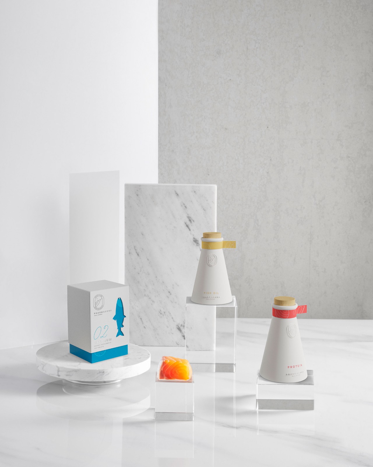 這家基于鮭魚的保健品公司由藥劑師的四個(gè)兒子所有,以其傳統(tǒng)和北歐起源而自豪。北極星下方帶有四座山峰的標(biāo)志象征著公司的根基和家族的脊梁。該設(shè)計(jì)還采用了靈感來自鮭魚紋理、地形和指紋的圖案。
