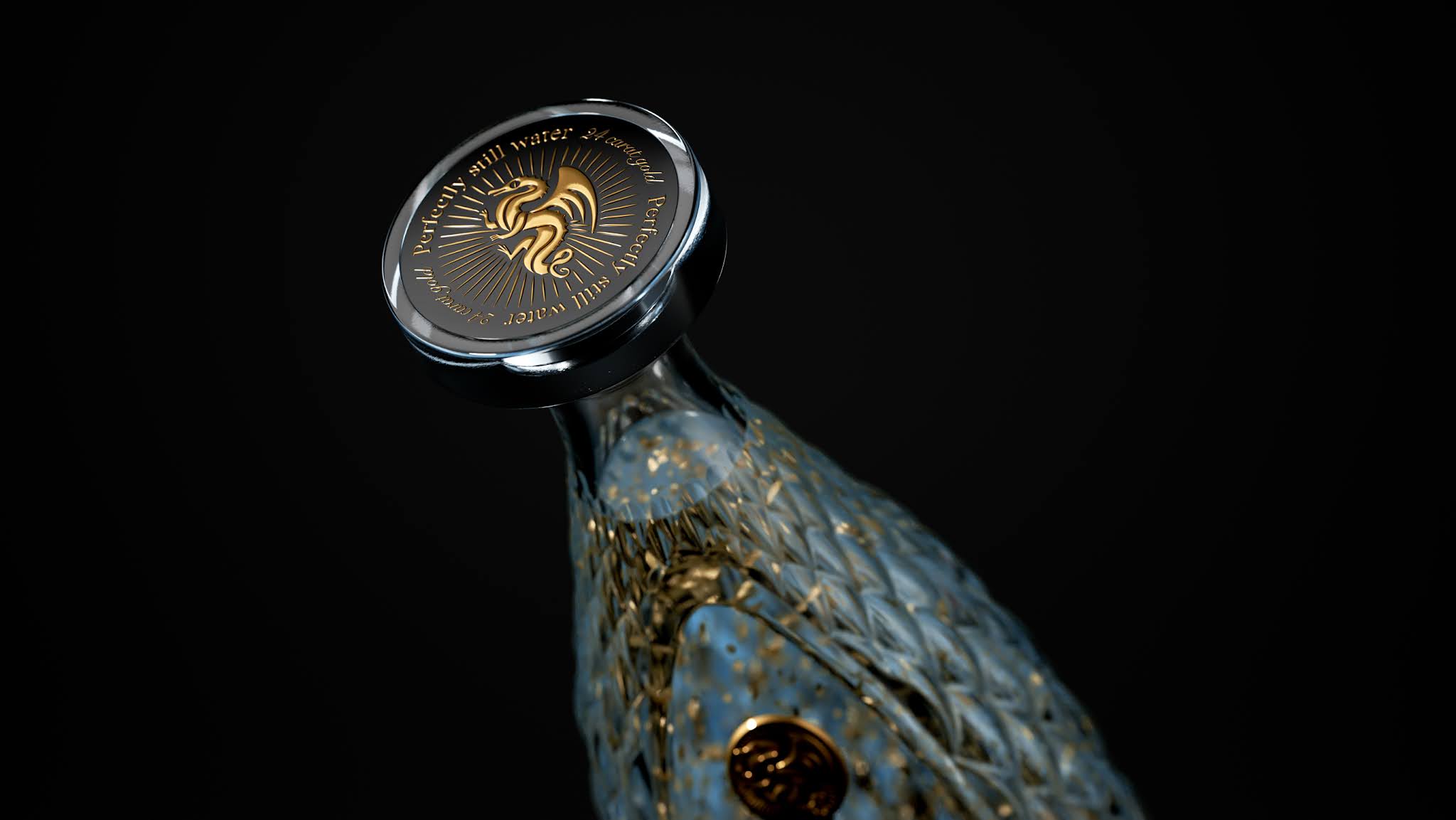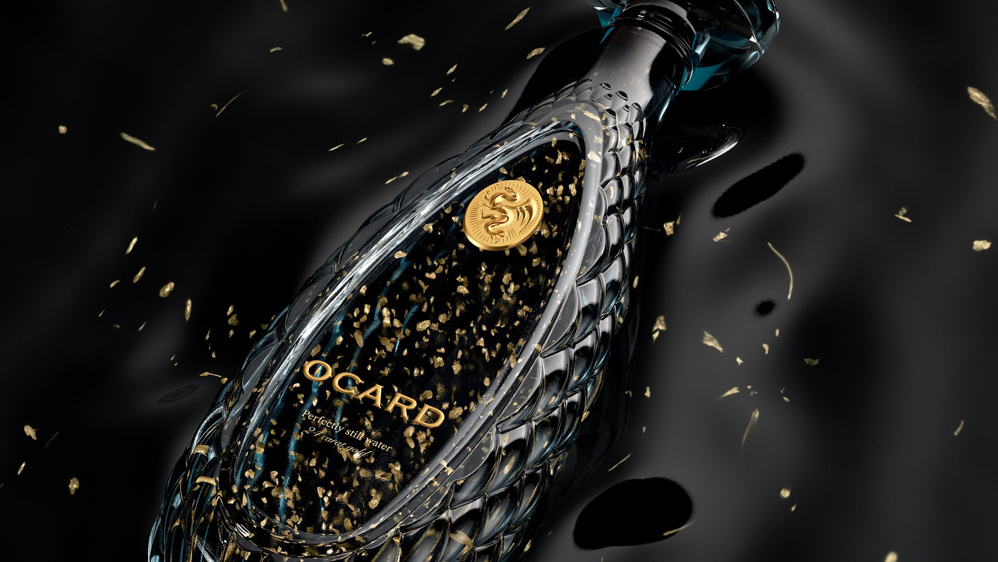 在烏茲別克斯坦有一個關(guān)于地下泉水由金龍守護的傳說。它的水里有金片,喝了它的人會獲得永恒的青春。我們將這一傳說視為黃金優(yōu)質(zhì)水的品牌故事。我們將品牌命名為Ocard,它是一種反向Draco。我們制作了一個獨特的玻璃瓶,上面覆蓋著“龍鱗”。上面幾乎什么也沒有:只有“o”字上有龍眼的標志和有龍的獎?wù)隆?/p>