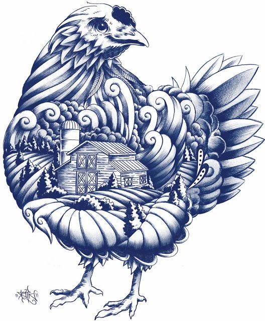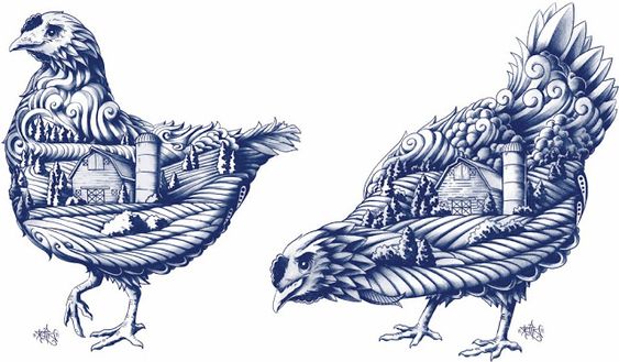 插畫(huà)采用刀刻手法創(chuàng)意,生動(dòng)把農(nóng)場(chǎng)的生態(tài)環(huán)境融入雞的形態(tài)當(dāng)中,生態(tài)即是雞,雞即是生態(tài),合二為一。