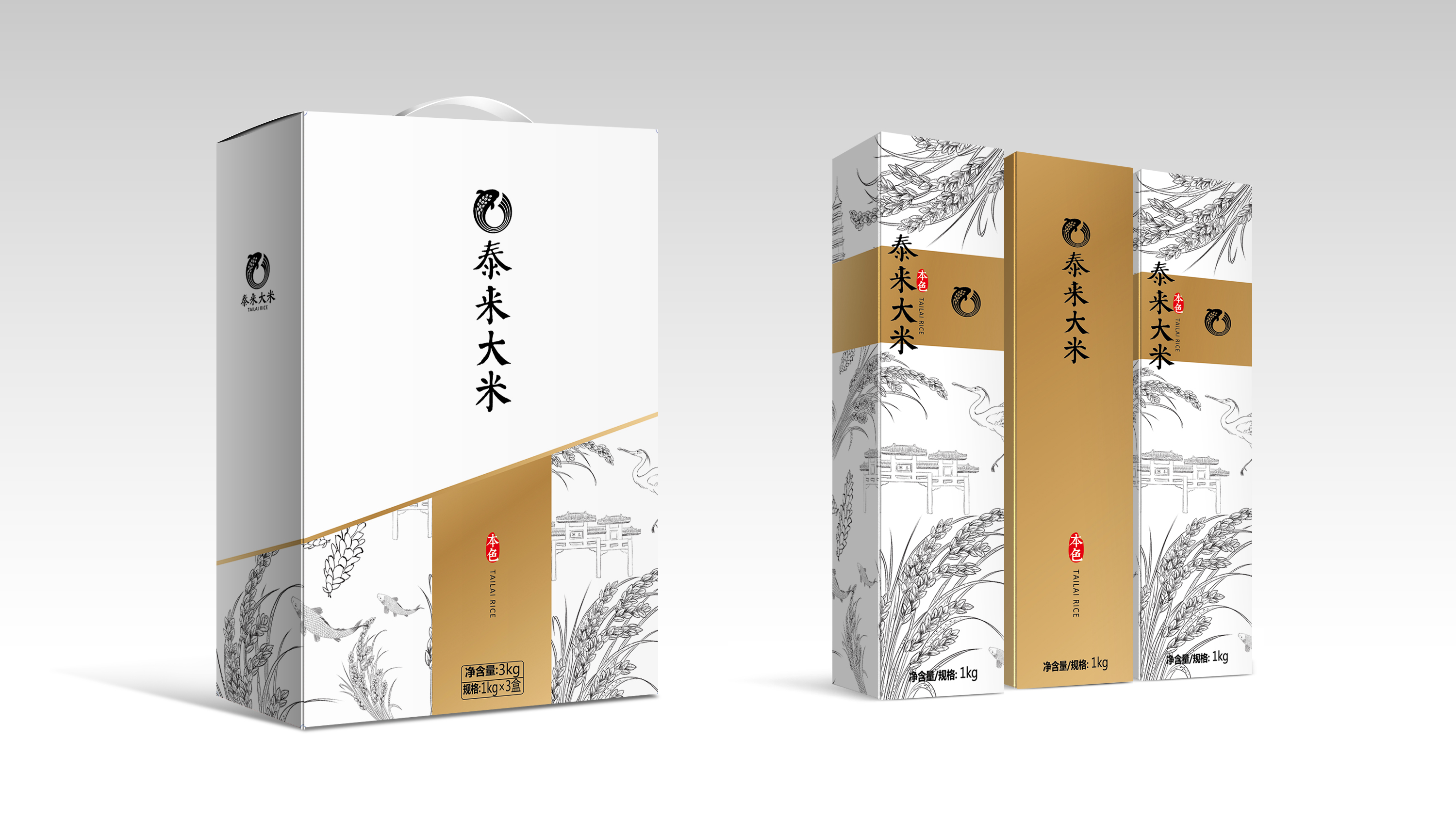 以“泰來大米”四個(gè)字為主設(shè)計(jì),設(shè)計(jì)袋裝、盒裝、精品禮品裝幾個(gè)系列,但風(fēng)格要統(tǒng)一。