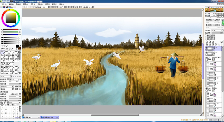 西林插畫師從“水韻”中提取元素,著重描繪水的流動(dòng)性,以線條為主,體現(xiàn)復(fù)古風(fēng)格。插畫中穿插泰來縣特有的文化標(biāo)志建筑,與插畫形成統(tǒng)一,實(shí)現(xiàn)“水韻”這一主題。