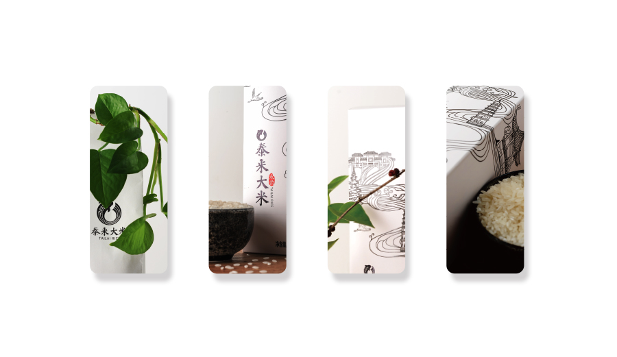 以“泰來大米”四個(gè)字為主設(shè)計(jì),加入魚米元素更有記憶點(diǎn)。