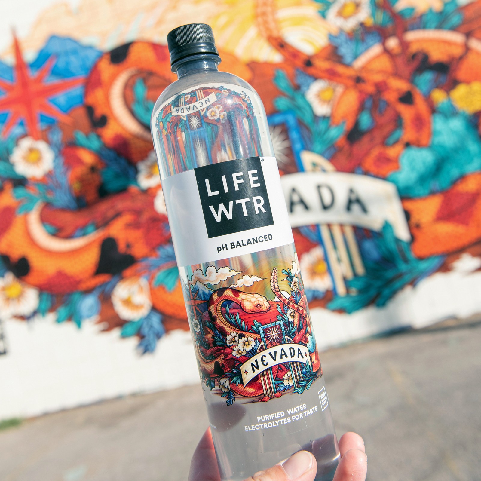 Kate O'Hara與 LIFEWTR 合作設(shè)計(jì)了一個(gè)代表她家鄉(xiāng)內(nèi)華達(dá)州及其對(duì)他有意義的水瓶。我們還根據(jù)瓶子的設(shè)計(jì)組合了一套不同的商品,包括頭巾、別針、貼片、貼紙和帽子。然后,他們聘請(qǐng)我根據(jù)瓶子設(shè)計(jì)繪制兩幅壁畫,一幅在里諾大學(xué),另一幅在拉斯維加斯藝術(shù)區(qū)。