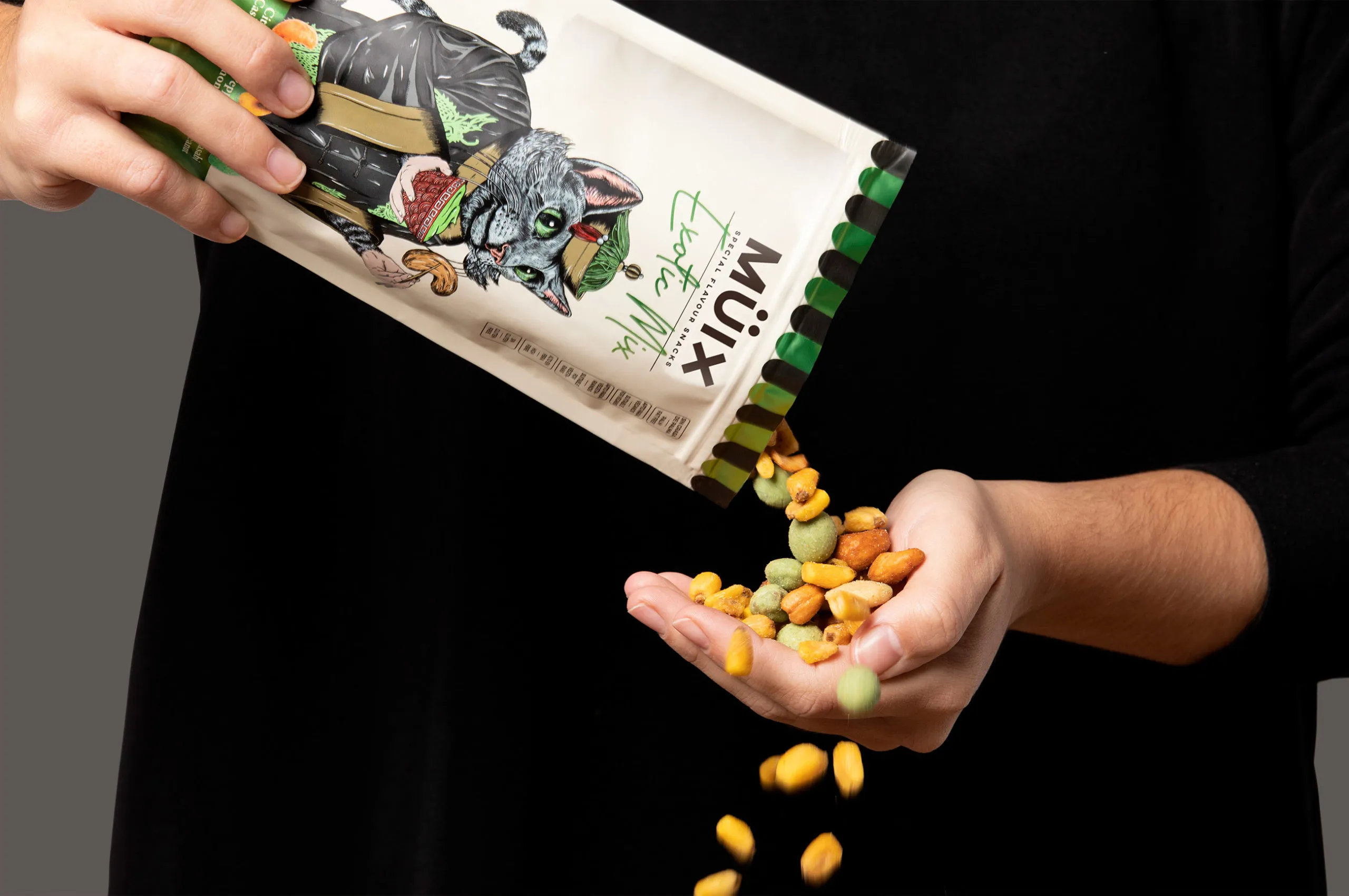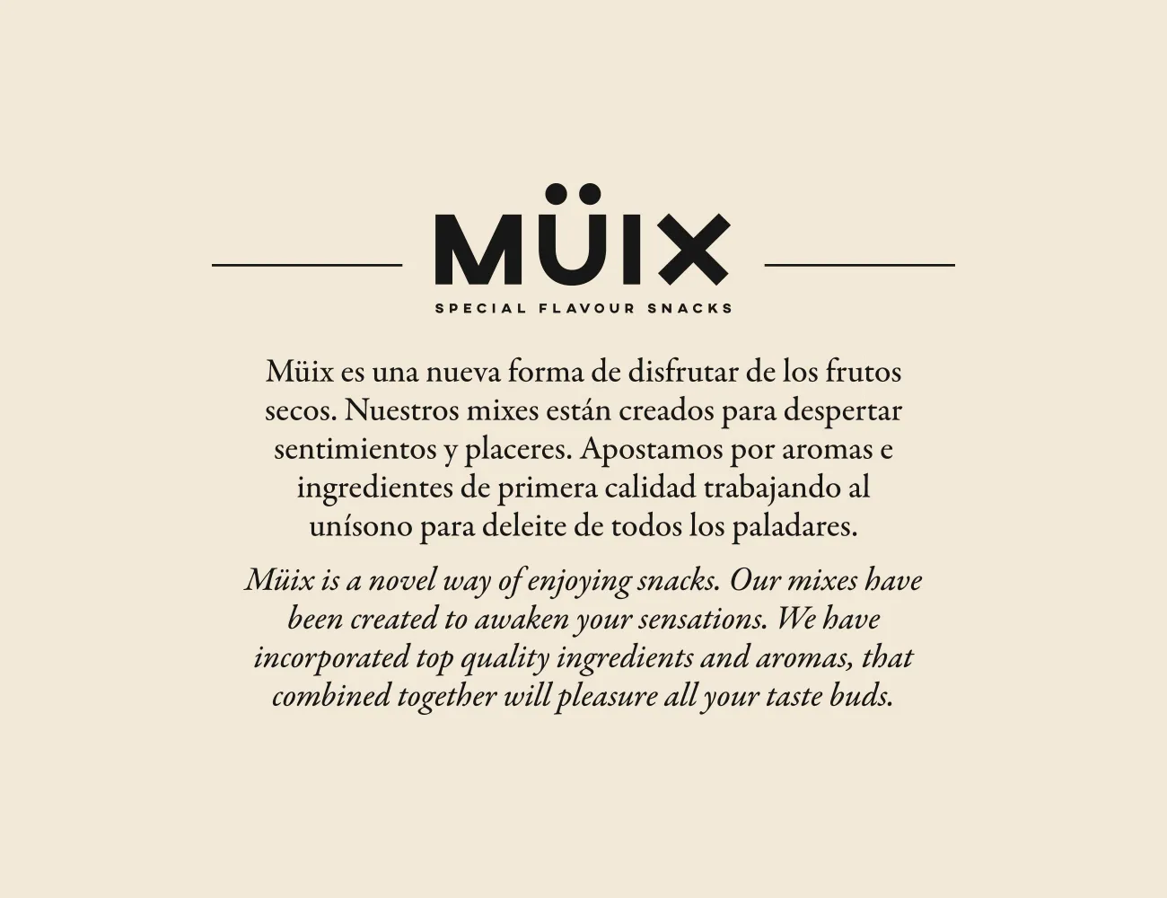Barquellas零食品牌和包裝設(shè)計(jì)項(xiàng)目Müix。一個(gè)巴倫西亞品牌的美味堅(jiān)果,一個(gè)大膽的創(chuàng)新,組合和口味的賭注,以喚醒感覺和樂(lè)趣,扭轉(zhuǎn)了該公司的家庭傳統(tǒng)。該系列包括兩個(gè)不同的類別,民主和高級(jí)。
