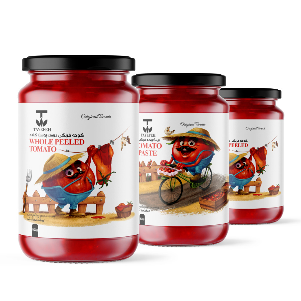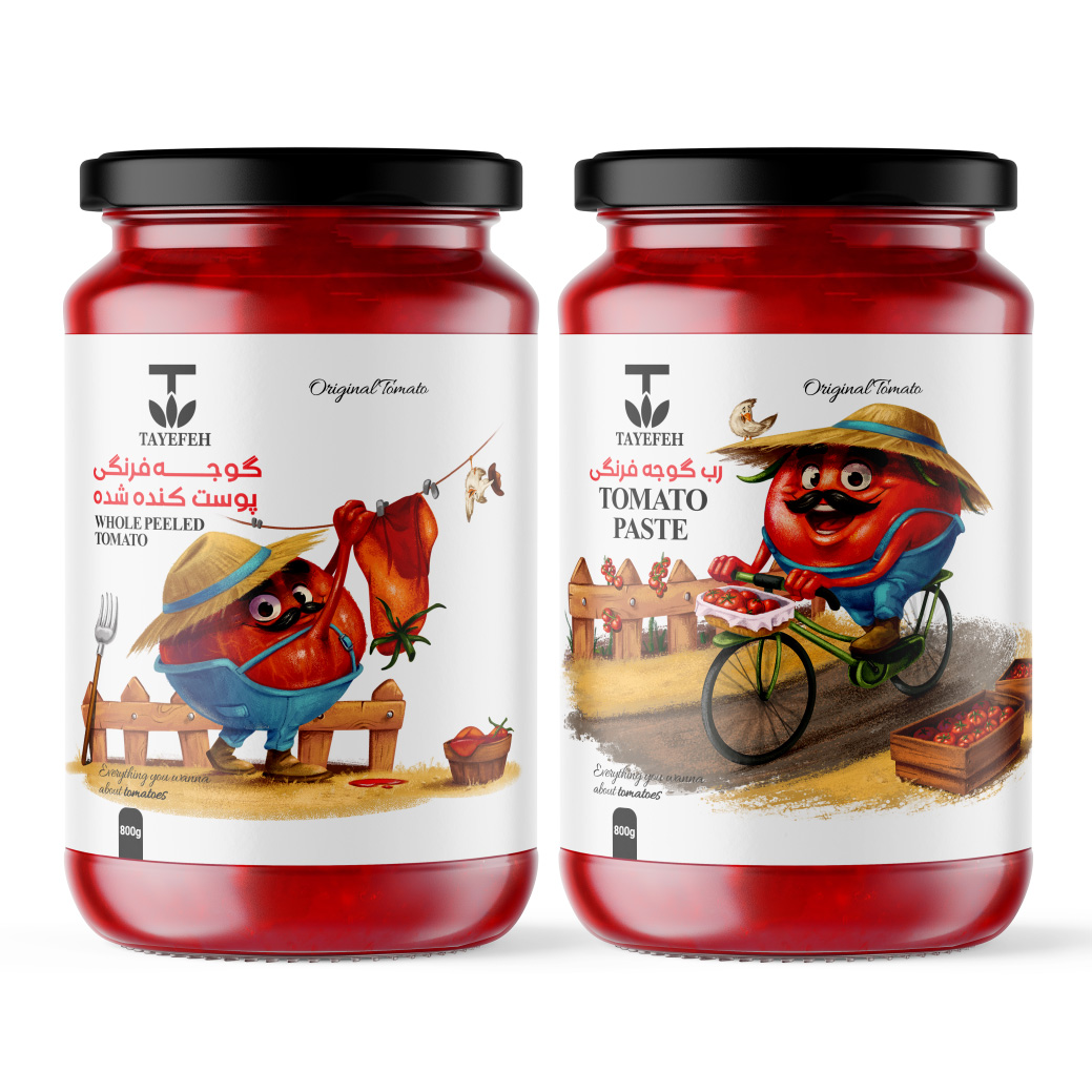 Tayefeh 品牌是食品生產(chǎn)領(lǐng)域的老品牌,這也是品牌名稱來源于傳統(tǒng)伊朗名稱的原因。在提供新產(chǎn)品時(shí),該品牌有兩個(gè)重要的優(yōu)質(zhì)產(chǎn)品在市場(chǎng)上銷售:去皮番茄和第二番茄醬。因此,根據(jù)所做的研究,決定為這些產(chǎn)品使用個(gè)人插圖,但更精確的目標(biāo)是這些圖像表現(xiàn)出健康和活力,并且設(shè)計(jì)得非常具體。