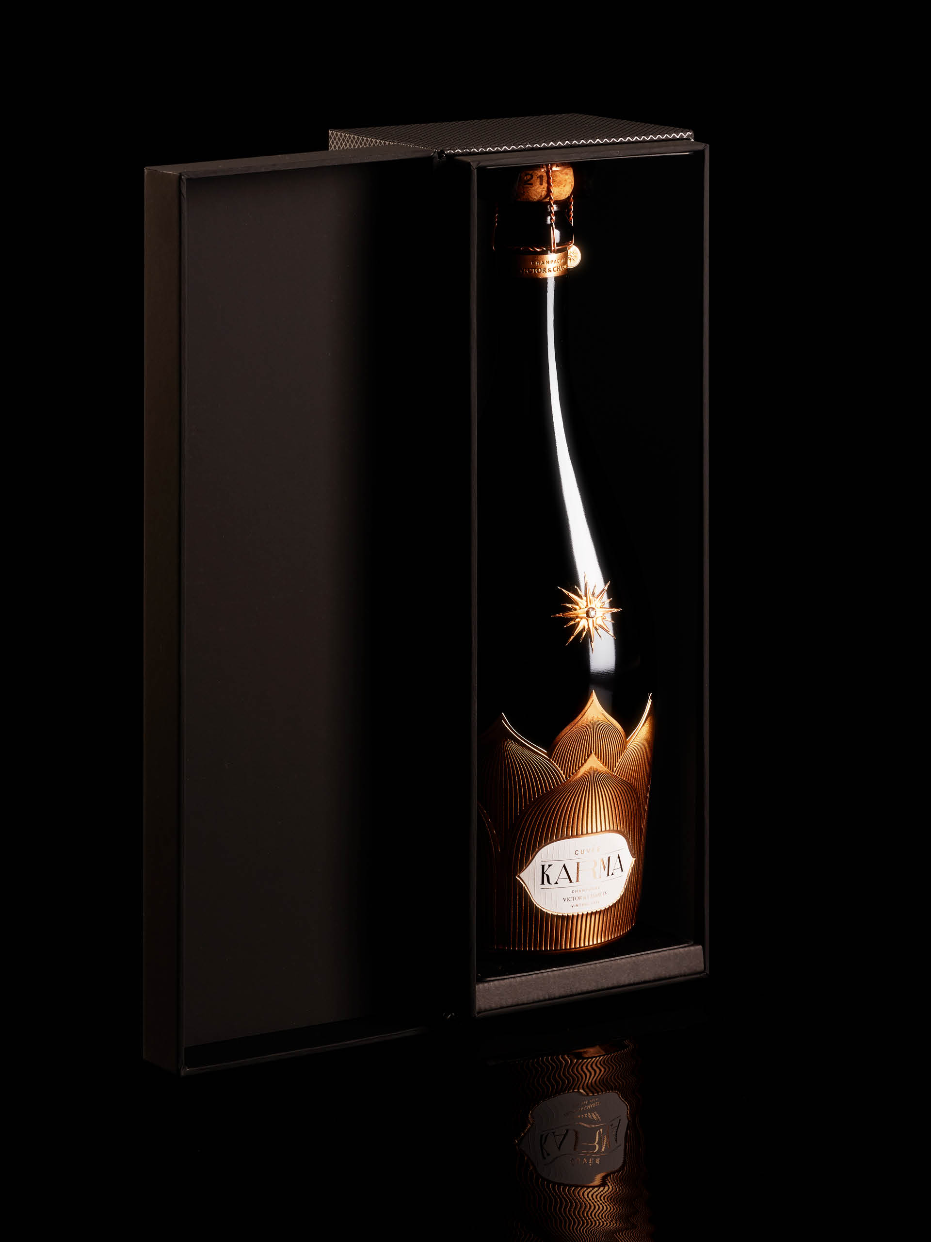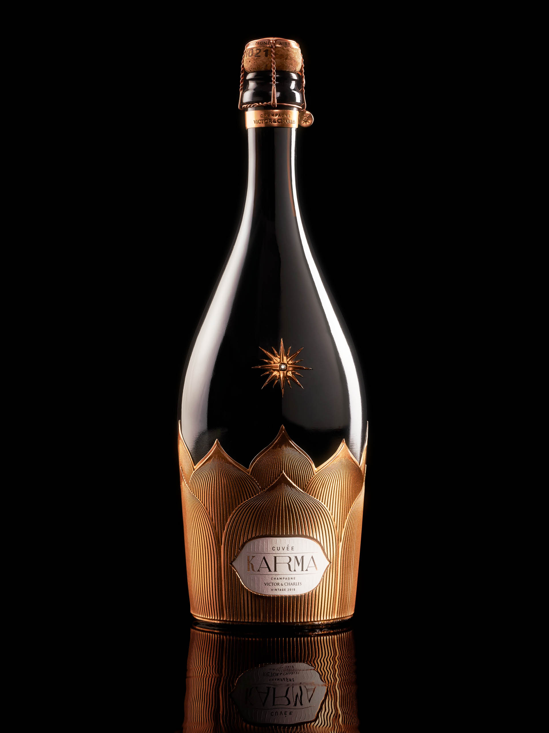 我們的客戶 Victor & Charles 有一個(gè)非常明確的目標(biāo):制作一個(gè)獨(dú)一無(wú)二的鑲有真正鉆石的香檳酒瓶。真正的名貴特釀,是酒莊的皇冠上的明珠。Millésime 2015 年由 60% 的霞多麗、30% 的黑比諾和 10% 的莫尼耶比諾釀制而成,未來(lái) 10 年將在瓶中得到很好的發(fā)展。我們接受了挑戰(zhàn),并創(chuàng)造了一個(gè)瓶子來(lái)詮釋 Victor & Charles 的所有者 Filip 的因果報(bào)應(yīng)哲學(xué)。產(chǎn)生了一種獨(dú)特的瓶身設(shè)計(jì),散發(fā)出優(yōu)雅、純潔和一絲頹廢的氣息。