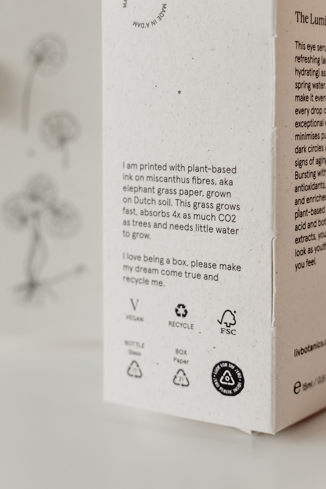 標(biāo)簽:產(chǎn)品照片 LIV Botanics Studio 包裝設(shè)計 可持續(xù)材料 植物護(hù)膚品 100%可回收包裝紙 環(huán)保紙包裝 視覺形象 植物圖畫 拆箱體驗 美容品牌 品牌標(biāo)識 LIV GIADA 包裝 瓶子標(biāo)簽 植物油墨印刷 品牌產(chǎn)品包裝設(shè)計公司