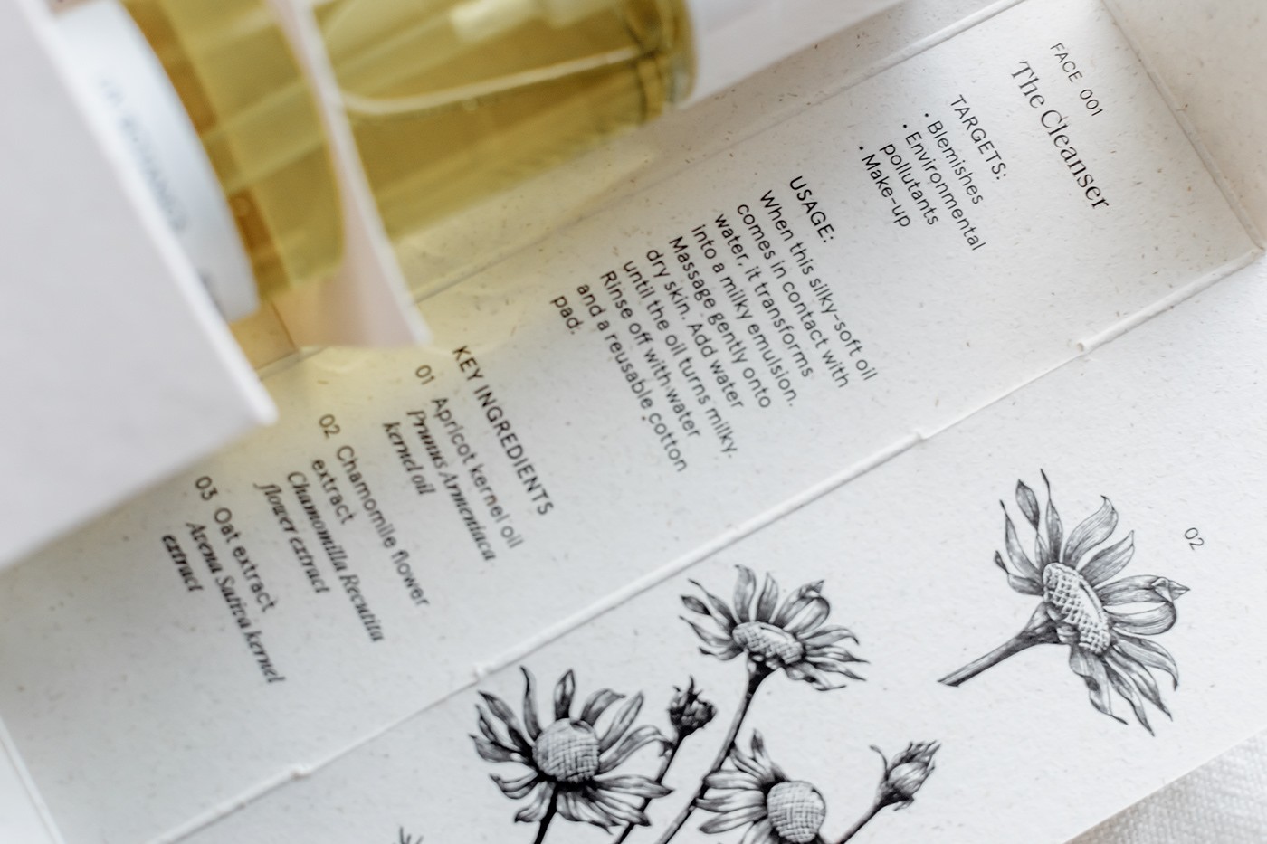 為了最大限度地減少品牌的碳足跡,我們在距離阿姆斯特丹市幾公里遠(yuǎn)的大象草纖維上使用植物基無毒墨水進(jìn)行本地印刷。主包裝盒不使用膠水,展開平展,展示每種產(chǎn)品中包含的關(guān)鍵成分的植物圖及其植物名稱和信息。用于瓶子和罐子的標(biāo)簽不含塑料,而用于運輸?shù)亩壈b、紙帶和包裝紙是 100% 可回收和可回收的,并使用無毒的植物性油墨印刷。