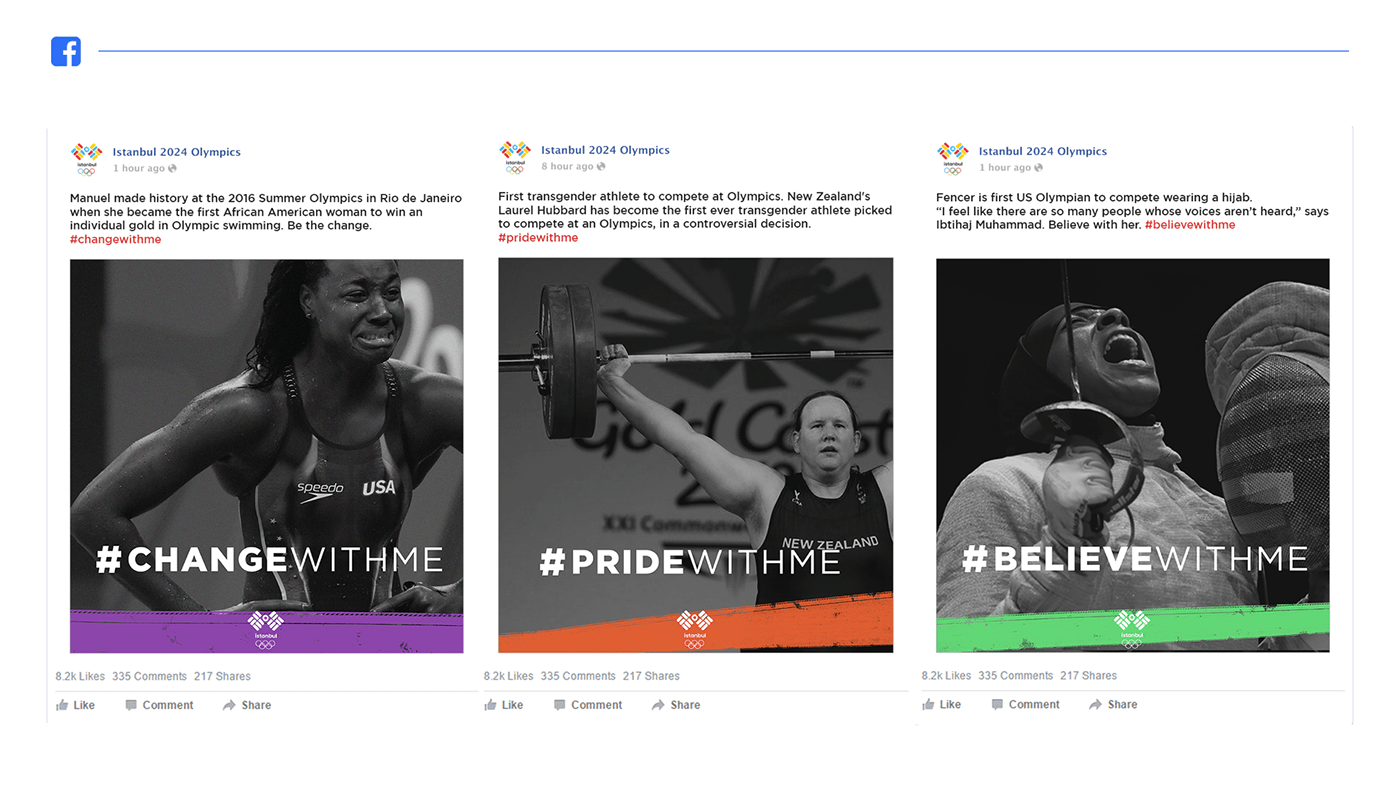 開(kāi)展了一項(xiàng)社會(huì)意識(shí)運(yùn)動(dòng),以確保充分融入。在反對(duì)所有種族主義和性別歧視的奧運(yùn)會(huì)上,你的口號(hào)與不同的情感和概念相互作用。它的目的是告訴我們,我們和所有的運(yùn)動(dòng)員在一起,你和他們?cè)谝黄?,我們一起體驗(yàn)所有的情緒。