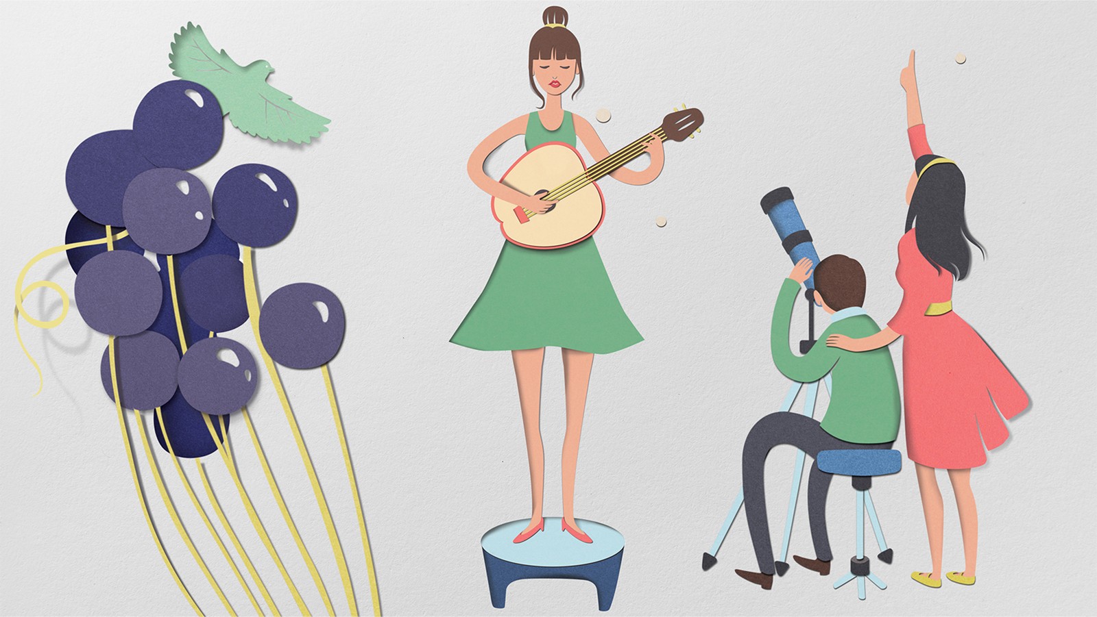 設(shè)計限制之一是無法使用水果攝影或逼真的插圖。出于這個原因,我們用剪紙技術(shù)創(chuàng)作了插圖,描繪了日常生活中的情景。水果始終存在,但成為有助于描述每個包裝背后的場景和故事的元素。這些故事與孩子們產(chǎn)生了聯(lián)系,而插圖、每種口味的鮮艷色彩和中心的標(biāo)志有助于突出貨架上的包裝。