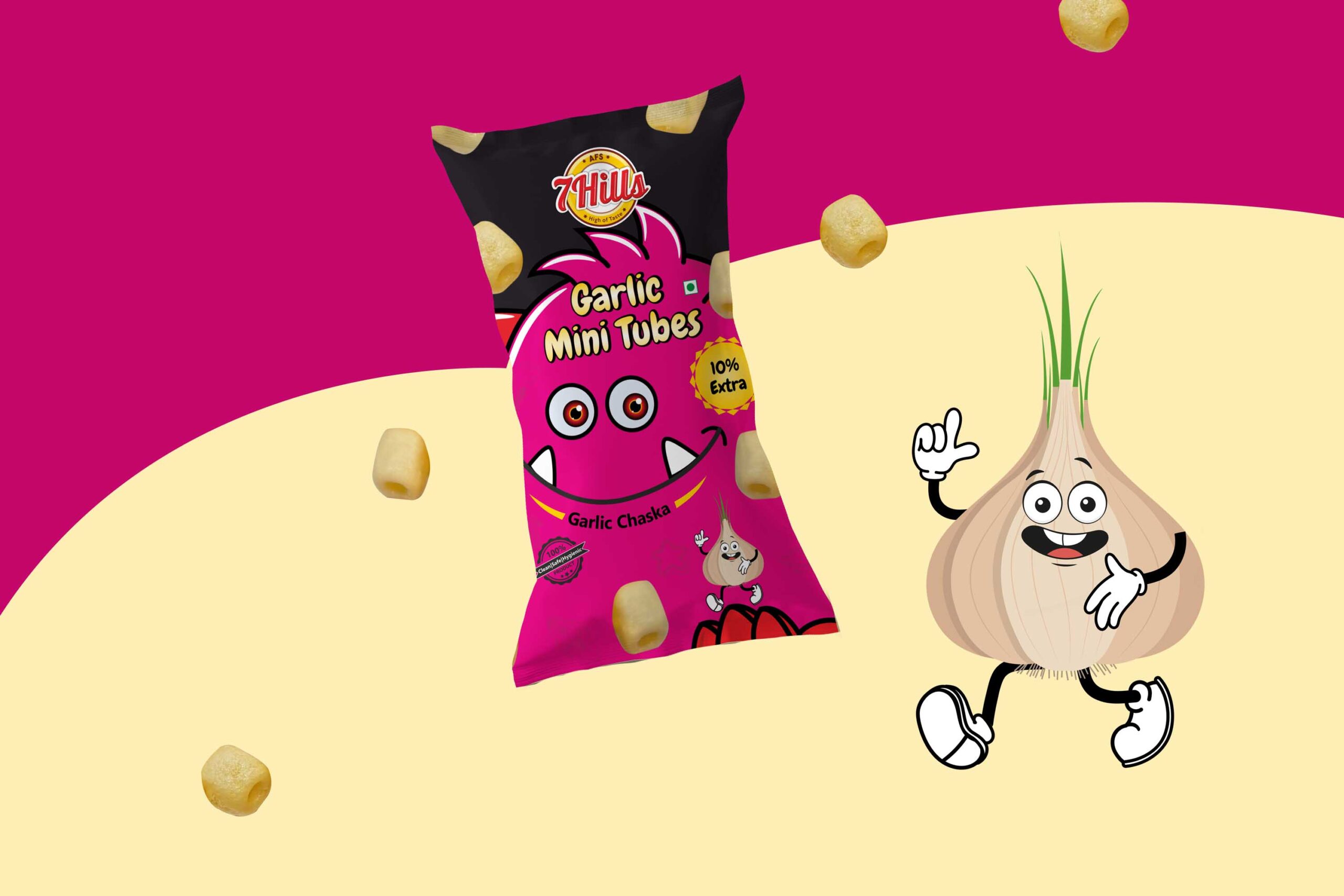 大蒜迷你管:這個包裝的設(shè)計(jì)考慮了令人垂涎三尺的大蒜味道。包裝上的人物是一個可愛的大蒜,它是通過繪畫創(chuàng)作的。這個設(shè)計(jì)的中心人物是粉紅色的。