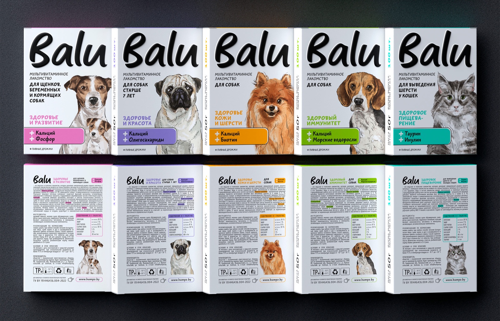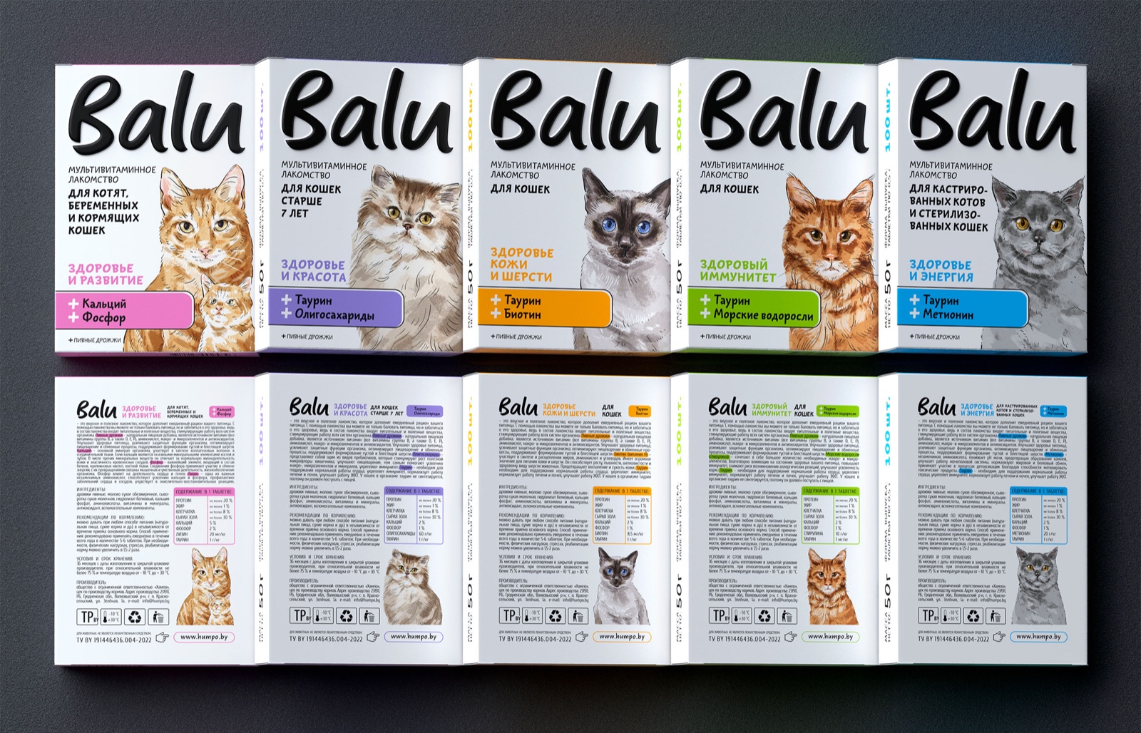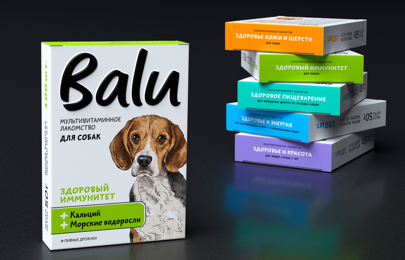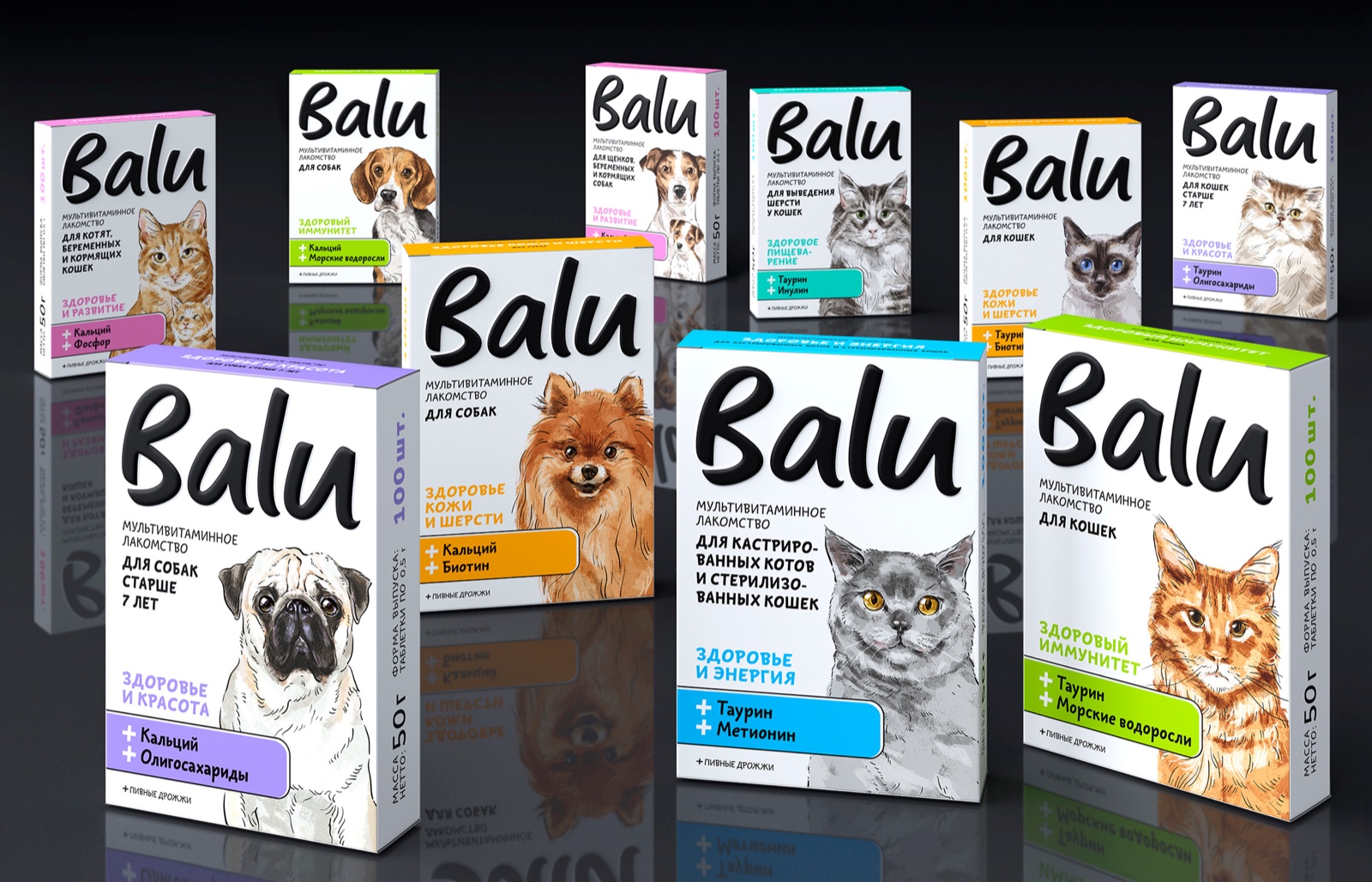 TM Balu系列補(bǔ)充了一種新的流行產(chǎn)品——一種復(fù)合維生素佳肴,旨在增強(qiáng)寵物的免疫系統(tǒng)和健康。它不是藥物,被用作動(dòng)物食品的添加劑。所產(chǎn)生的維生素復(fù)合物以片劑的形式生產(chǎn),并包裝在單獨(dú)的紙箱中。該系列包括四種狗用產(chǎn)品和六種貓用產(chǎn)品。