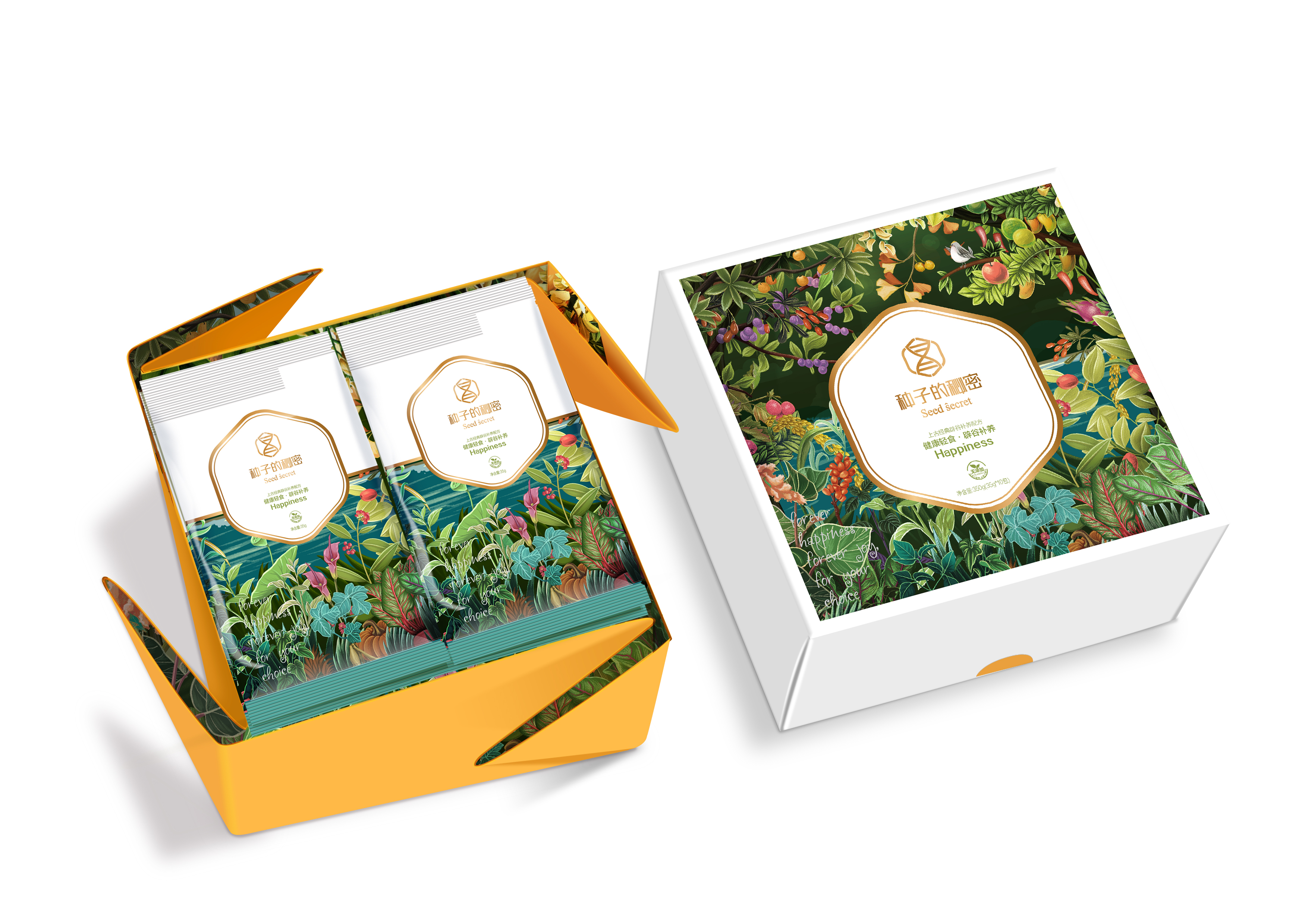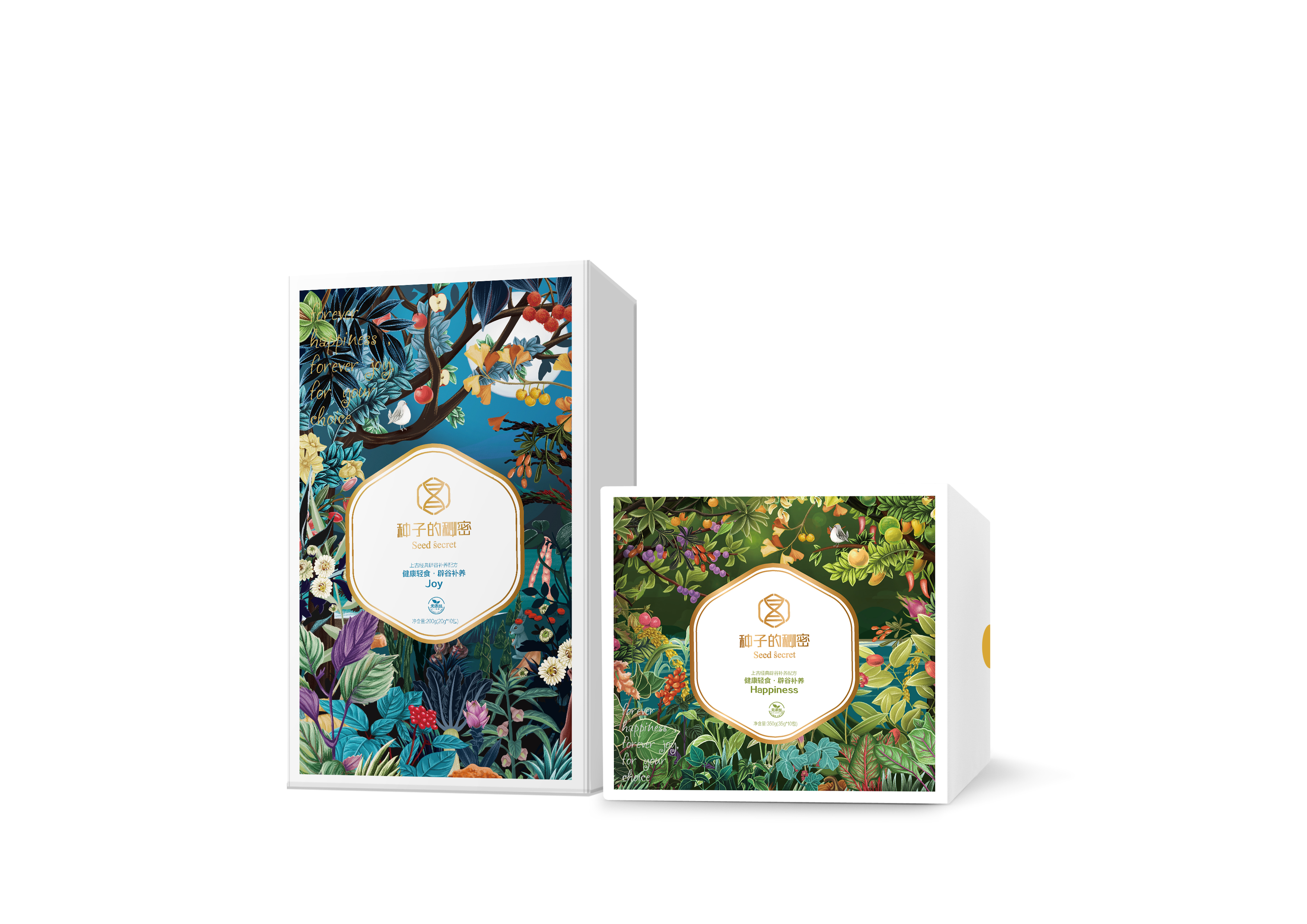 關于“種子的秘密”包裝設計,緊隨品牌定位和情懷。將內涵與時尚結合,將形與神交融,將理念與視覺貫通。