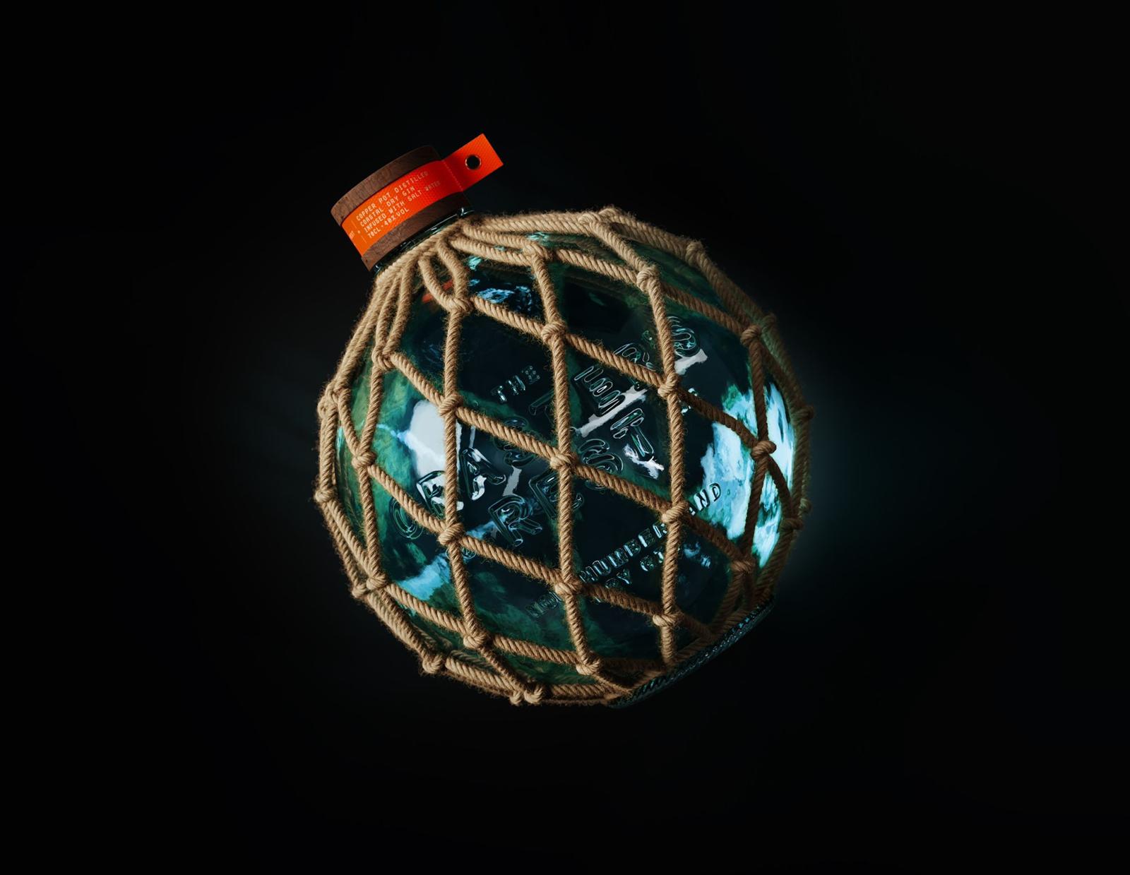 Studio Unbound的靈感來自20世紀初使用的玻璃浮標,遠早于現(xiàn)代塑料浮標的發(fā)明。這些玻璃浮標被縫在漁民的魚線上,以使?jié)O網(wǎng)漂浮在海洋中,并用繩子包裹起來,以防受到撞擊。在玻璃表面上大量壓印字體,使瓶子盡可能保持原始形狀和結(jié)構(gòu)的真實性,以及從一段時間以來與包裝相關(guān)的常見飾面。采用一種老式的裝瓶技術(shù),以保持沉重的打結(jié)繩索包裹的浮標的原始美感,這在貨架上創(chuàng)造了一種獨特的美感。瓶子的玻璃呈藍綠色,吹出時模仿海洋深處。Studio Unbound選擇了一頂風(fēng)化的浮木帽子,上面刻著一個傳統(tǒng)的水手指南針,以確保漁民總是能回家。深嵌在瓶蓋中的還有一層厚厚的高亮度乙烯基,以一件漁民外套為靈感,用銅鉚釘完成。整體結(jié)果是一個引人注目的瓶子設(shè)計,是現(xiàn)代和傳統(tǒng)的完美融合,以及在其城鎮(zhèn)的歷史浸透。