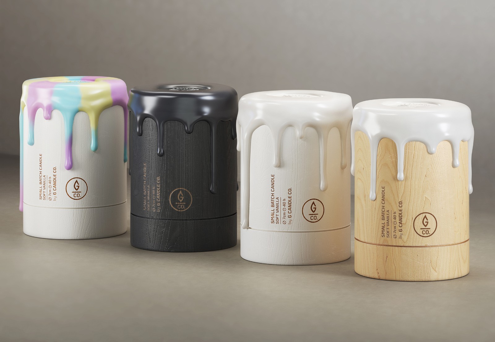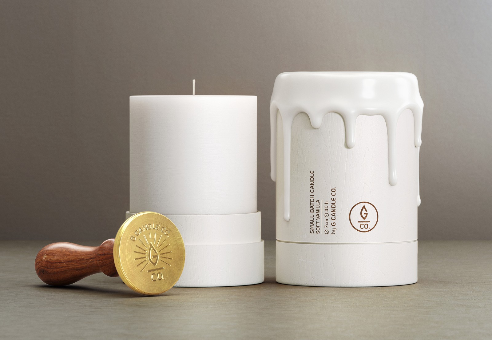 在目前競爭非常激烈的蠟燭市場中,很難在包裝方面進行產(chǎn)品差異化。G Candle Company 是一家小批量生產(chǎn)具有天然香氣和獨特身份的香薰蠟燭系列。生產(chǎn)過程中的每一步都經(jīng)過精心控制。每支蠟燭都是手工傾倒和制作的,具有迷人的設(shè)計,對于喜歡手工商品的人來說很有吸引力。選擇木制圓柱形包裝來傳達其天然產(chǎn)品,并通過浸入密封蠟制成,以在頂部形成獨特的蠟燭淚珠蠟流外觀。這種迷人的設(shè)計可以通過蠟或木缸的多種混合和改變顏色來增強。頂部添加了蠟封印章以突出其品牌,并帶有一個簡單的G標(biāo)志,其圖形就像蠟燭火焰形狀。
