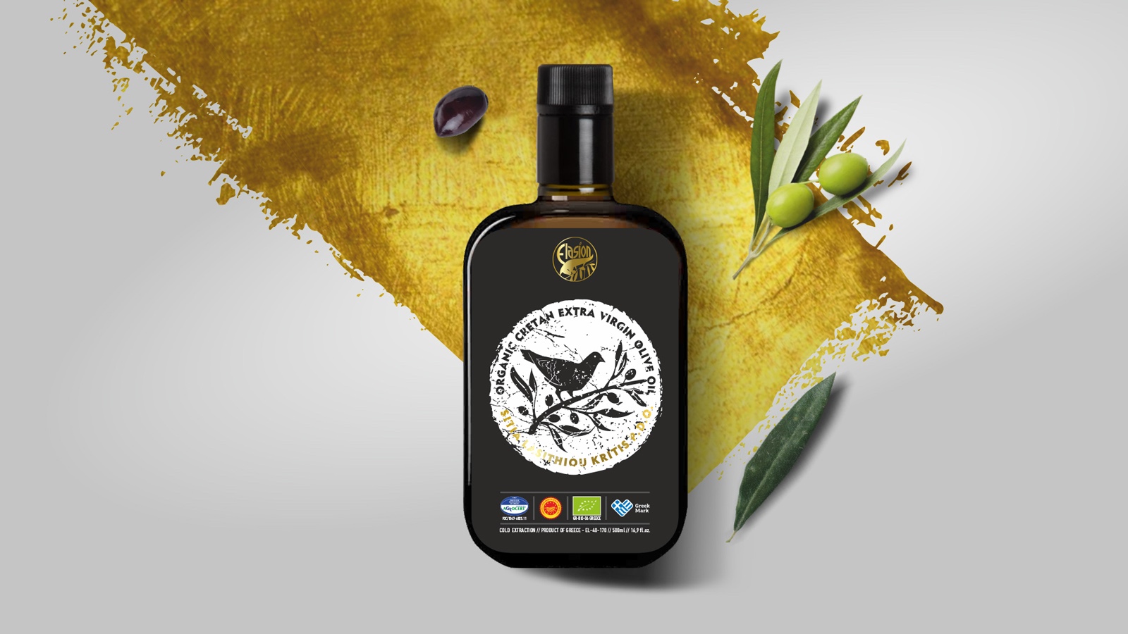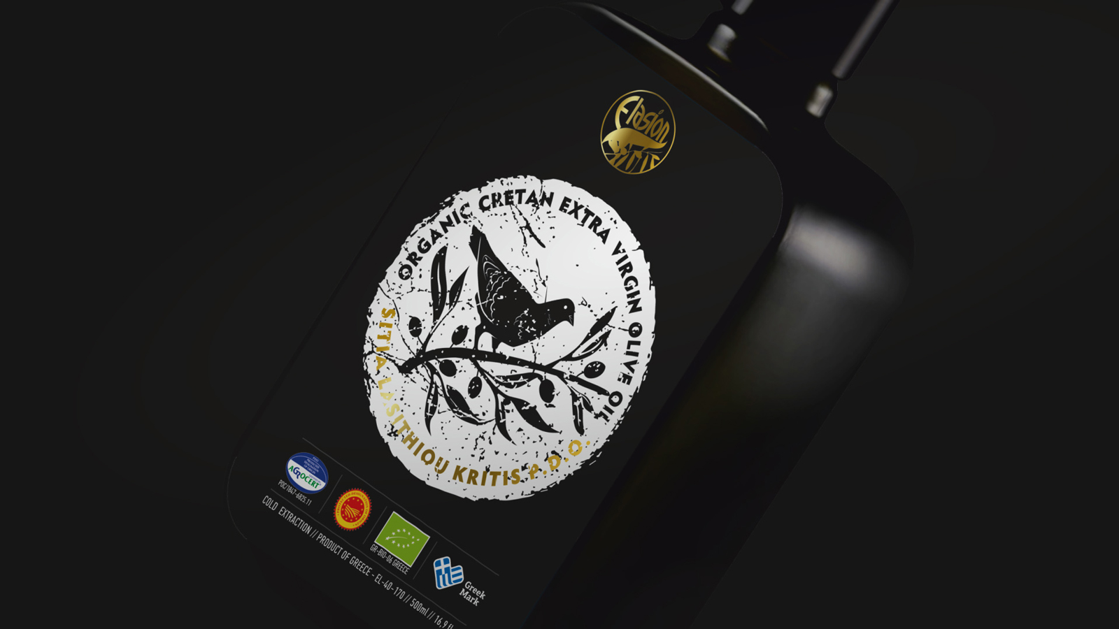 Elasion公司的有機(jī)克理坦特級(jí)初榨橄欖油P.D.O.新產(chǎn)品標(biāo)簽是我們團(tuán)隊(duì)最近的設(shè)計(jì)項(xiàng)目之一。