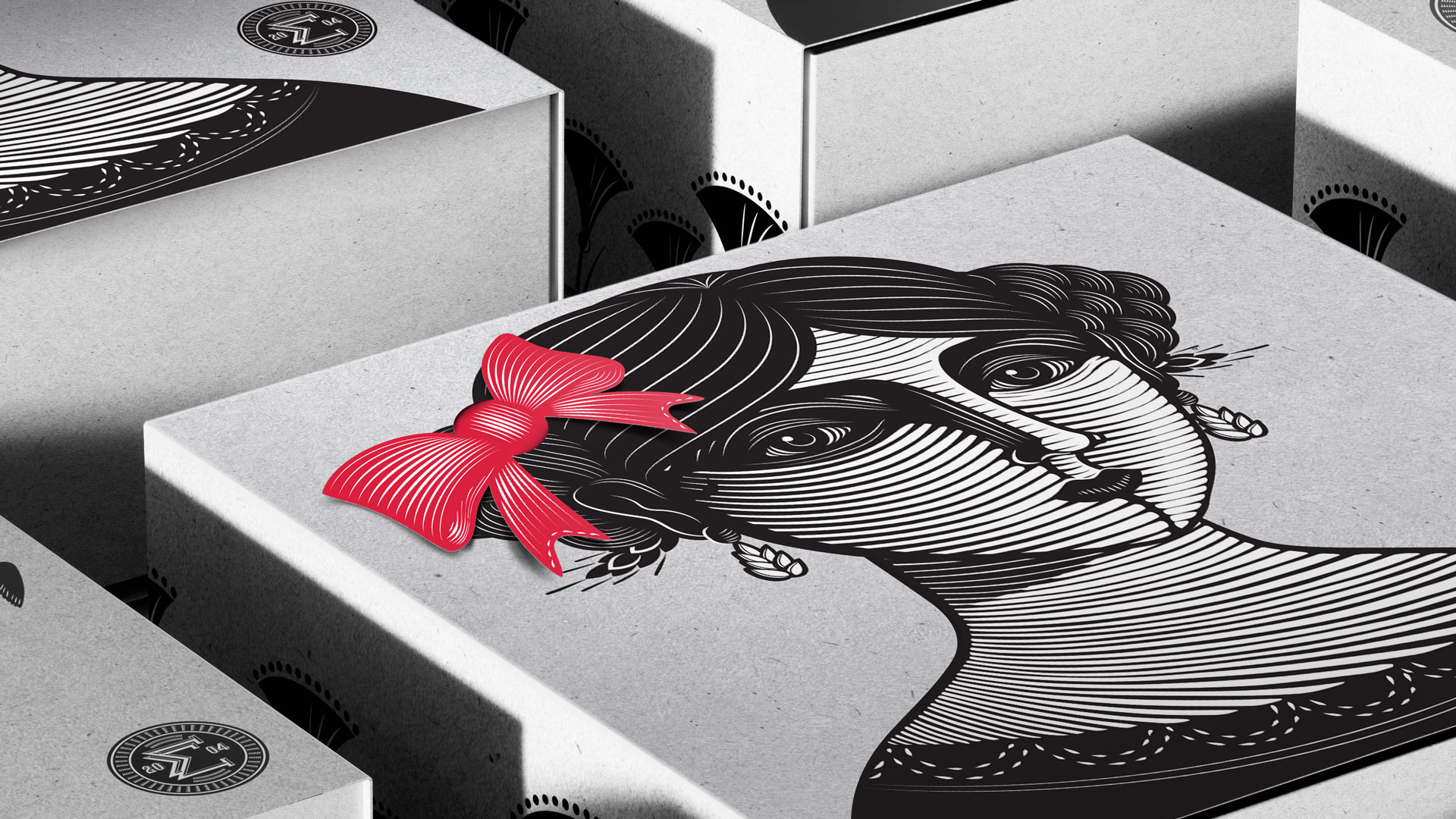 所有使用的蝴蝶結都是由回收材料制成的。蝴蝶結是從紙屑,從原始包裝時,削減生產。我們沒有把剩下的文件扔掉,而是把它們作為最后的點睛之筆再利用。包裝只使用黑色墨水和蝴蝶結紅色pantone顏色,從而減少了墨水的使用。