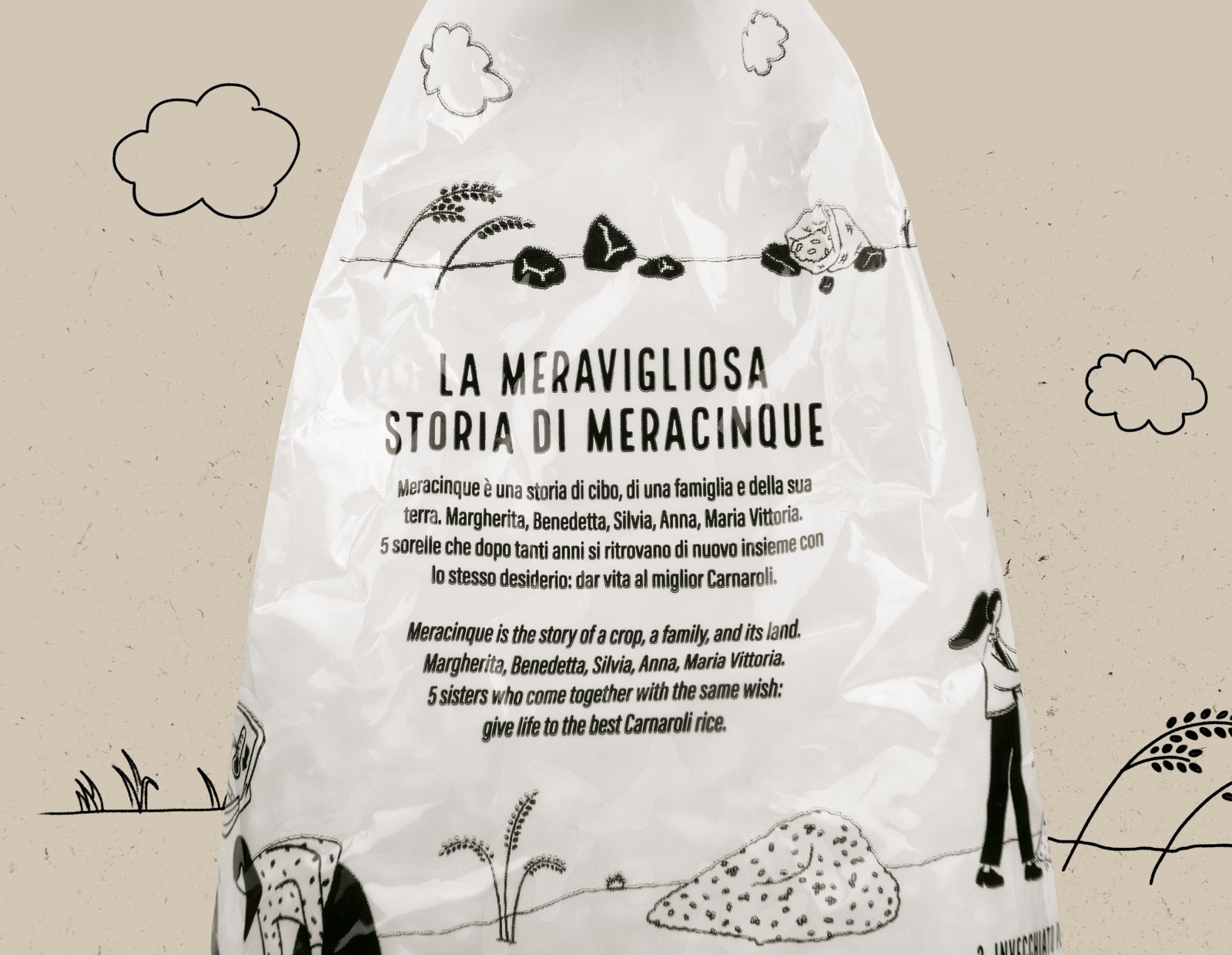 Meracinque 項目是幾年前由 Silvia、Benedetta、Vittoria、Anna 和 Margherita 發(fā)起的:五位姐妹在共同的熱情的驅(qū)使下,多年后決定改變自己的職業(yè)道路,共同努力實現(xiàn)她們的夢想最好的 Carnaroli 米飯。直到幾個月前,Meracinque 大米還只在 Horeca 市場上銷售,在意大利最著名的廚師那里獲得了巨大的成功。為什么不擴大規(guī)模,讓消費者享受這些獨特的谷物呢?因此,CBA 意大利隊首先與西爾維婭會面,然后與其他姐妹會面。