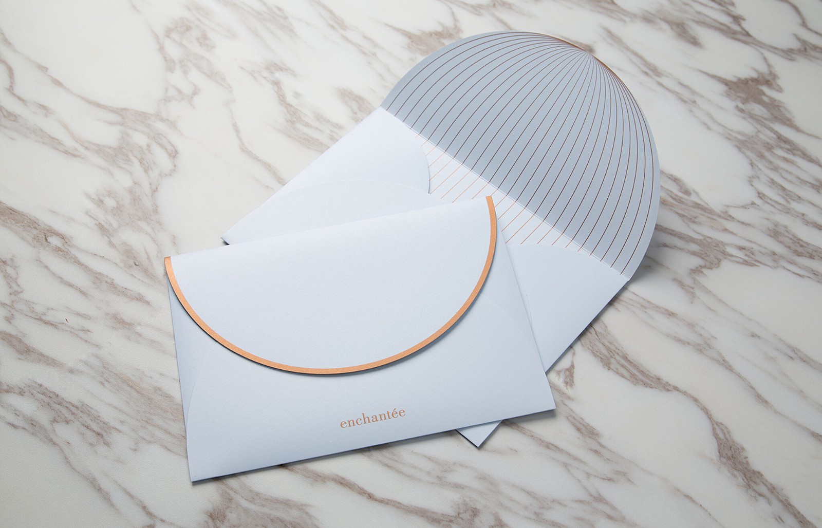 Enchantée是一個新的手工法國甜點品牌,面向婚禮禮盒市場。明亮的色彩和舞女的標(biāo)志表達(dá)了快樂和優(yōu)雅的品牌精神。這位戴著法式帽子的女士正在為即將到來的婚禮和甜點的美味而跳舞。她的短裙混合了馬德蘭的形狀。所有傳單和包裝都使用相同的配色方案和裝飾框架。無論何時在線瀏覽網(wǎng)站或收到有形印刷品和盒子,都能感受到一致的柔軟和優(yōu)雅。