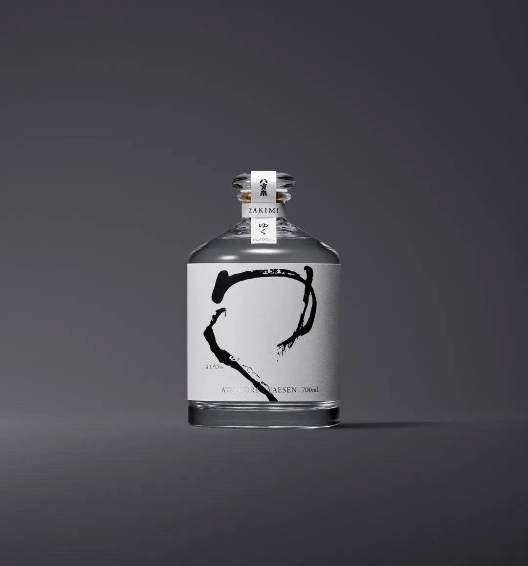 瓶貼的設(shè)計(jì)以干凈簡潔的純白色為底,通過抽象的書法筆畫呈現(xiàn)“ゆく”的視覺符號。瓶蓋處也是直接簡潔的形式展示名稱信息,其中主品牌名“ZAKIMI”只是采用了灰色為底來突出。
