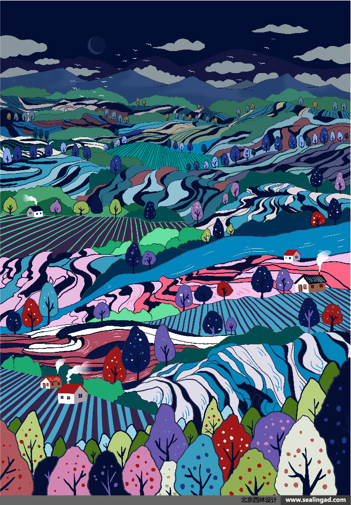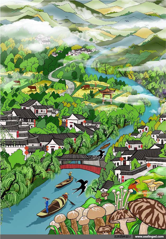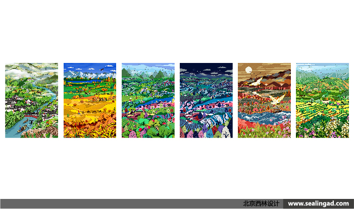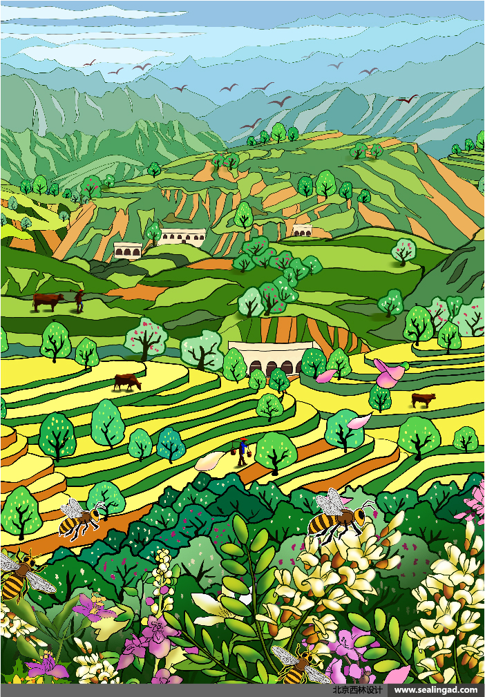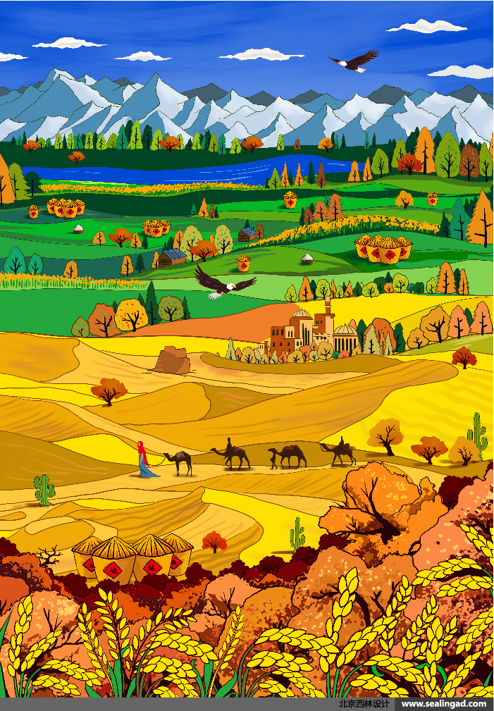 西域綠洲插畫采用了綠色調(diào)為主,給人直觀的綠色健康感,