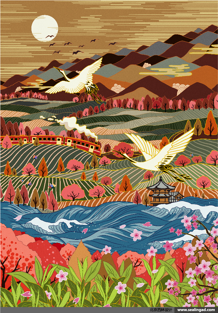 一方面更好的展現(xiàn)出日式風情地域文化的特色,另一方面進一步加深受眾對日式風情插畫的認知;