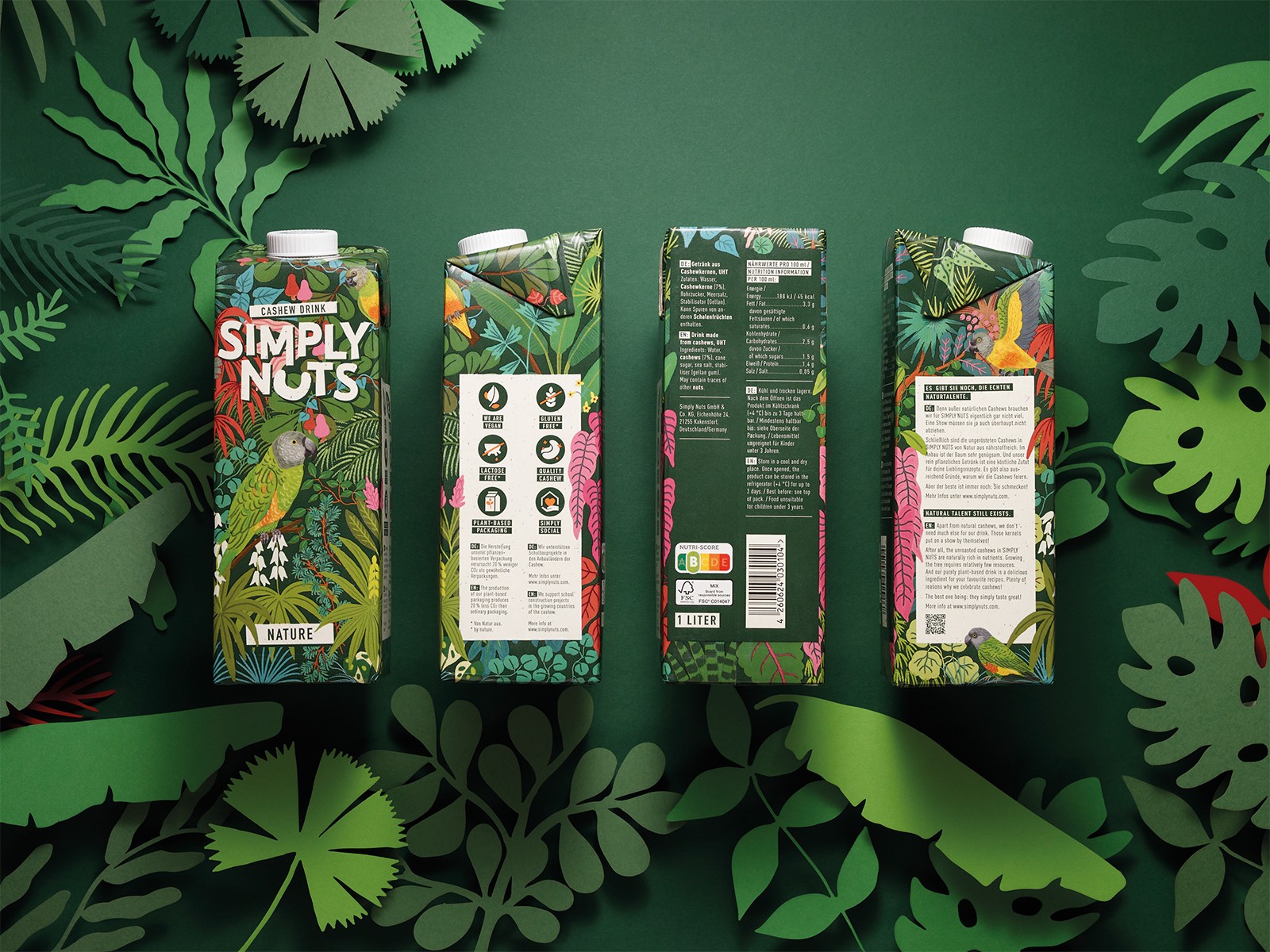 市場上充斥著提供牛奶替代品的品牌。如果一家初創(chuàng)企業(yè)不脫穎而出,它就很難有所作為。 Simply Nuts 是腰果奶品牌,擁有“德國腰果比例最高”。Simply Design 與 Studio Oeding 接洽,“根據(jù)深入的市場和設(shè)計分析,在牛奶替代品領(lǐng)域開發(fā)一個新的消費品牌?!?/em>腰果飲料產(chǎn)品系列由三個品種組成,于去年秋季率先在德國快速消費品市場推出。包裝設(shè)計應(yīng)將品牌和產(chǎn)品概念形象化,并在市場和立場上形成明顯的差異化出去?!?/em>