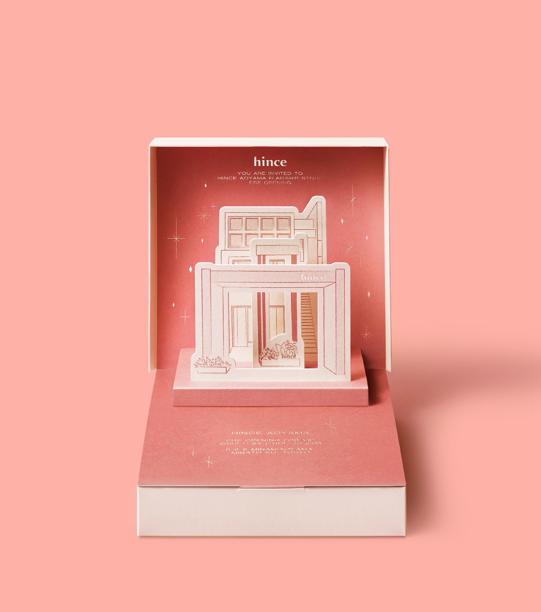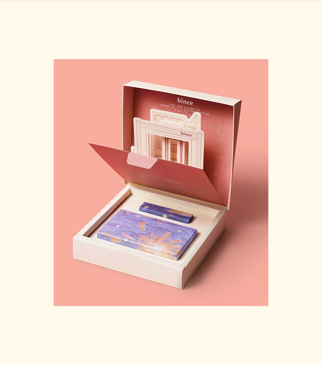 這是Hince日本第一家旗艦店“Hince Aoyama”Mood Narrative彩妝品牌包裝設(shè)計(jì)創(chuàng)意。打開套裝包裝,映入眼簾的是青山旗艦店的插畫,呈現(xiàn)出Hince獨(dú)有的悠閑而有魅力的接待。彈出窗口背后的銀色背景描繪了青山商店的降雪,完美地捕捉了年末的節(jié)日氣氛。