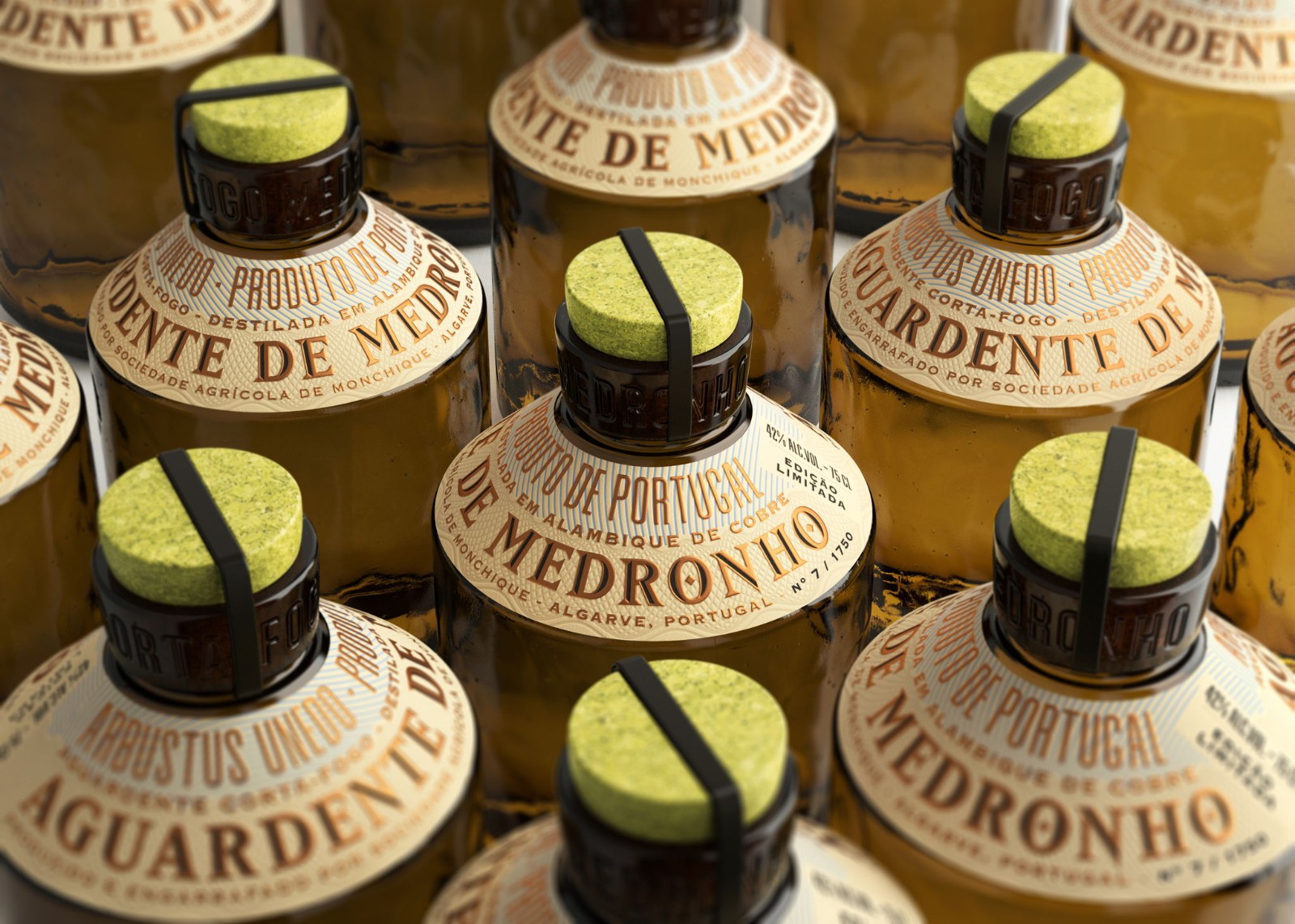 我希望瓶子的有機(jī)質(zhì)地因其裸露而脫穎而出,傳達(dá)與自然和 Medronho 工藝生產(chǎn)的聯(lián)系。在創(chuàng)作過程中,很明顯,標(biāo)簽需要一個不尋常的指定空間,以避免與瓶子競爭。令人驚訝地發(fā)現(xiàn),當(dāng)我們從明顯的聚光燈下移除標(biāo)簽時,它變成了一個更強(qiáng)大的設(shè)計元素。