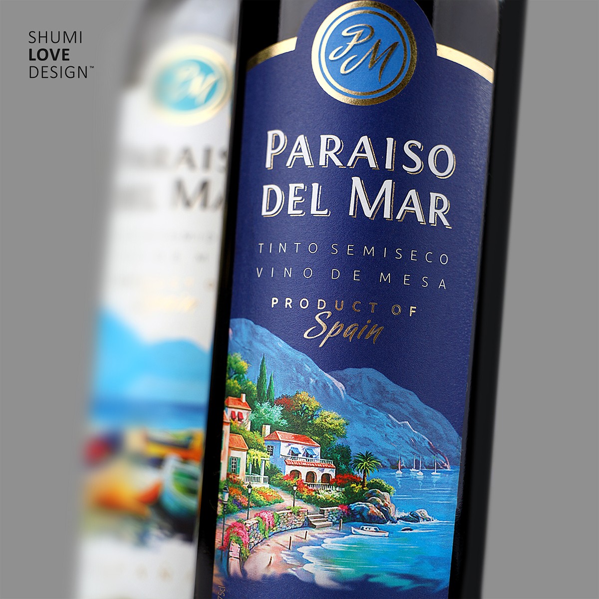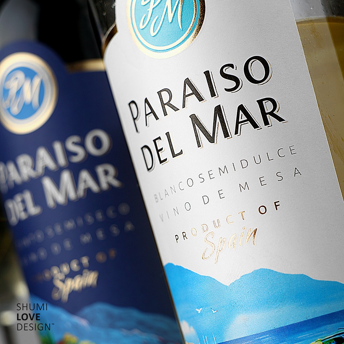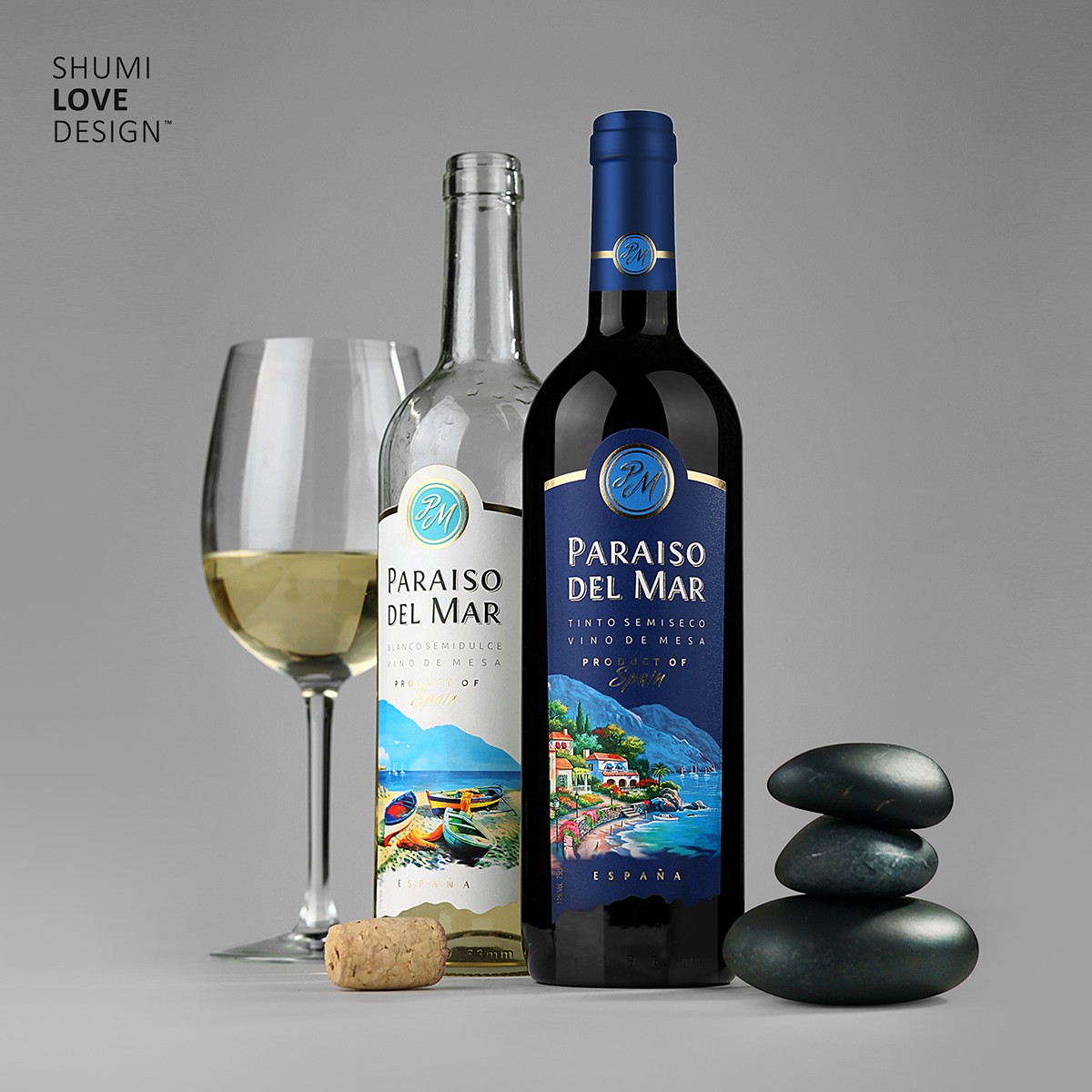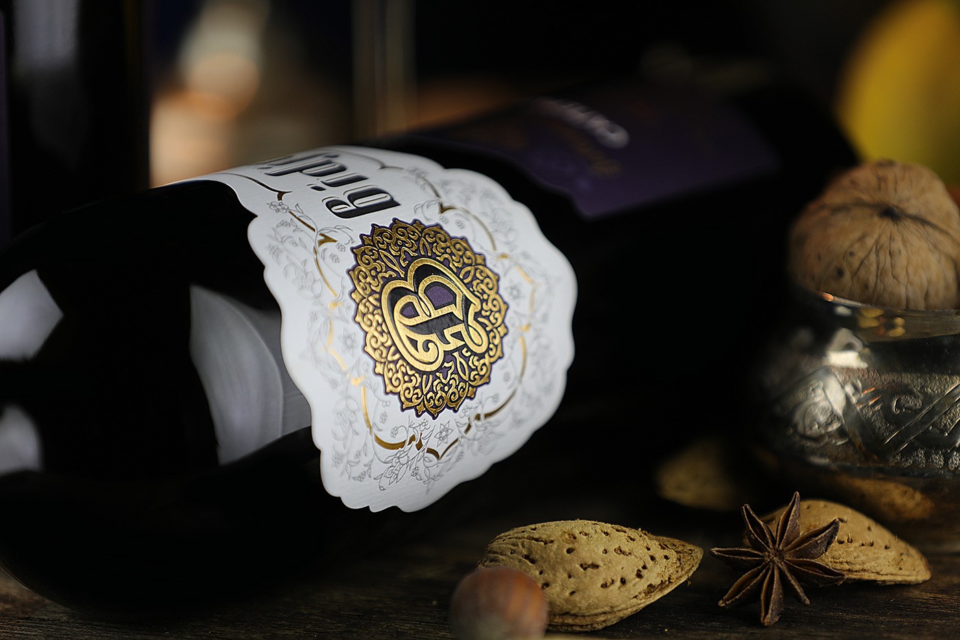 酒包裝設計欣賞,珠光紋理的標簽上印著可觸感的字母,加上華麗的燙金,讓這款酒瓶拿在手上,賞心悅目。別具特色的分區(qū)與插畫表現(xiàn),與瓶頸處的燙金標簽相得益彰。
