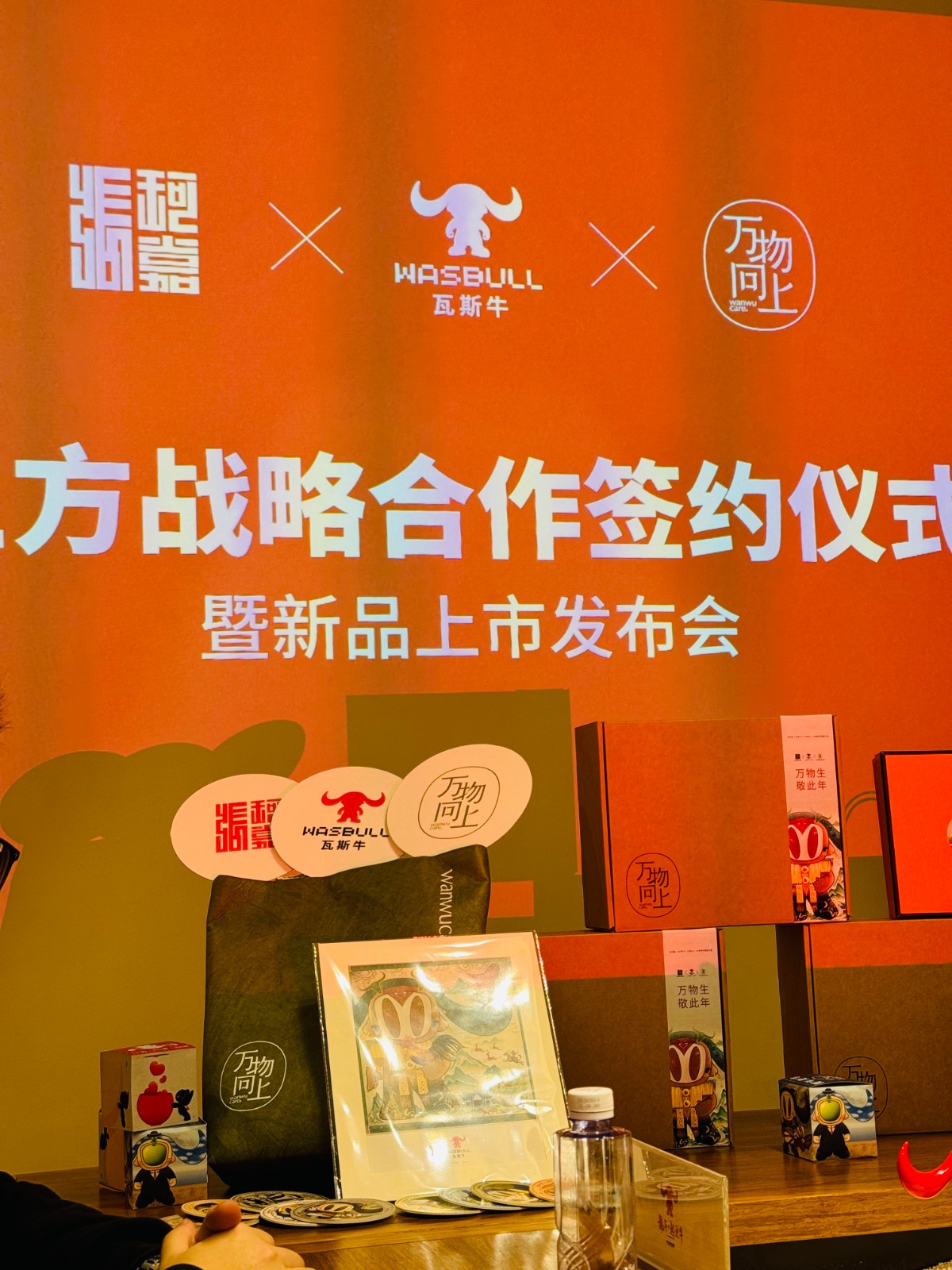再看三方的合作布局,更是精妙絕倫。瓦斯牛位居中央,其寬闊的雙角向兩側(cè)伸展,宛如一座穩(wěn)固的橋梁,將張珂嘉品牌與萬物向上緊密相連。左側(cè)張珂嘉品牌的圖形與右側(cè)萬物向上品牌的圖形皆呈印章樣式,這印章猶如莊重的誓言,天圓地方之下,大地承載萬物,寓意著三方合作有著堅如磐石的根基以及無限廣闊的前景。