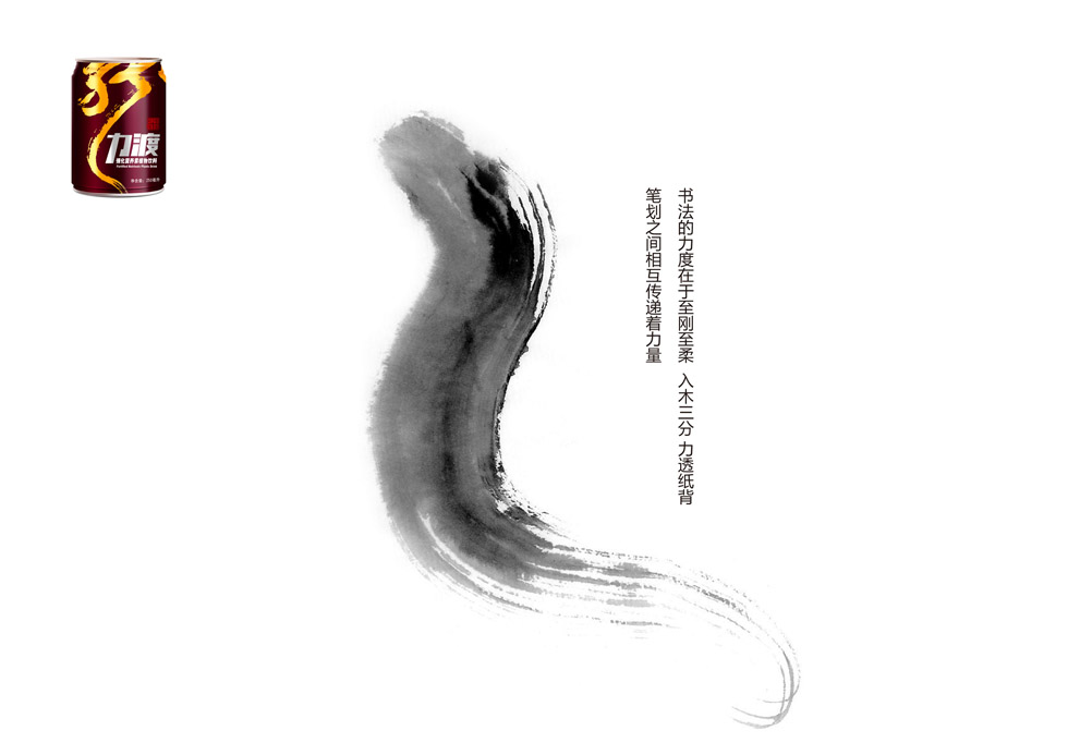 最終結(jié)合客戶需要定制一款中國能量的飲料,選用中國傳統(tǒng)書法的對力度的表現(xiàn),來做主視覺的設(shè)計(jì)。