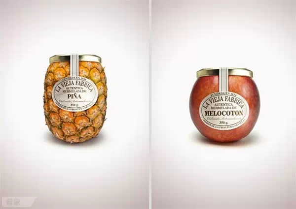 很多包裝中會用到水果元素來設(shè)計,特別是在一些水果相關(guān)的產(chǎn)品,比如果汁飲品等等。譬如深澤直人的這款仿生“果汁皮”飲料包裝,就像是直接使用了香蕉、草莓、奇異果等的外皮。直觀到一眼便知。