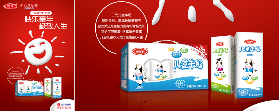 項目背景:三元牛奶推出針對兒童市場定位的系列產(chǎn)品。分別從健智與益骨兩個方向來包裝兒童牛奶,西林設(shè)計為此設(shè)計了兩個可愛的牛牛形象,在包裝應(yīng)用和營銷推廣中起到了非常重要的作用。
