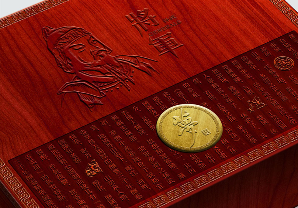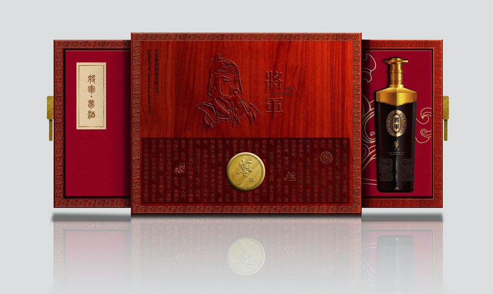 項(xiàng)目背景:木質(zhì)禮盒與古典撰文的設(shè)計(jì),彰顯了將軍酒的年代感;而浮雕手法的人像與文字處理,更顯示出此酒理念中亙古悠長(zhǎng)的文化氣息和綿余溫厚的味覺(jué)設(shè)定。