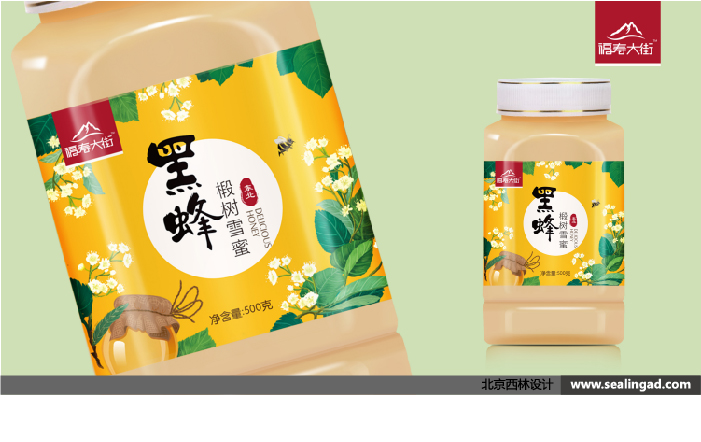 福壽大街牌黑蜂椴樹(shù)雪蜜包裝設(shè)計(jì)