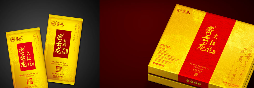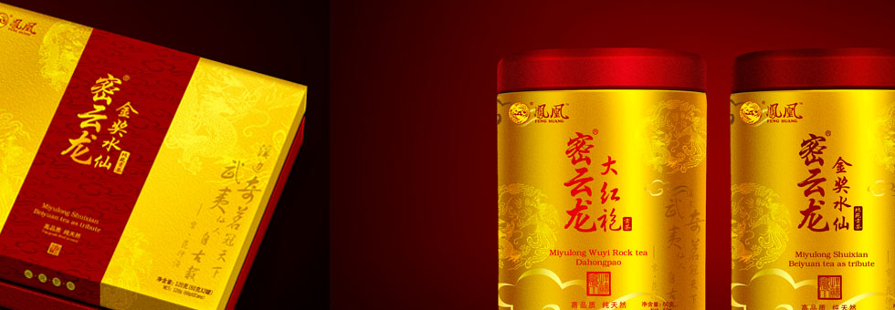 項(xiàng)目背景:紅色與金色的交叉運(yùn)用,顯示出禮盒喜慶、尊貴的氣質(zhì);中式團(tuán)型與云型手繪圖案的運(yùn)用,彰顯了中式古典情懷。鳳凰密云龍茶葉,屬武夷茶中極品,以此精致禮盒襯托,當(dāng)之無(wú)愧。