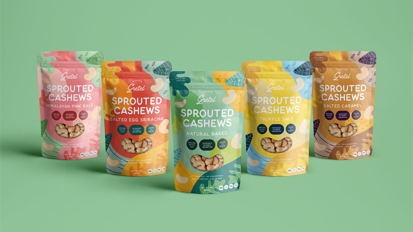 這一系列的包裝是為定制腰果品牌設(shè)計(jì)的,是真實(shí)的,誠(chéng)實(shí)的和所有的自然。其目的是通過(guò)在包裝上使用明亮、充滿活力的自然色,吸引目標(biāo)觀眾的注意力,從而從貨架和其他競(jìng)爭(zhēng)對(duì)手中脫穎而出。插圖是手工繪制,以提供真實(shí)的元素,而顏色是精心挑選和匹配,以提供一個(gè)良好的代表口味。