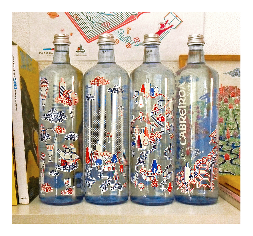 與Imaxe機構(gòu)合作,我很高興地展示了四瓶限量版的,帶有以造型技術(shù)為靈感的圖案,使用公司色彩,藍(lán)色和紅色。每種設(shè)計都與水的來源有關(guān):天空、雨水、植被和巖石。