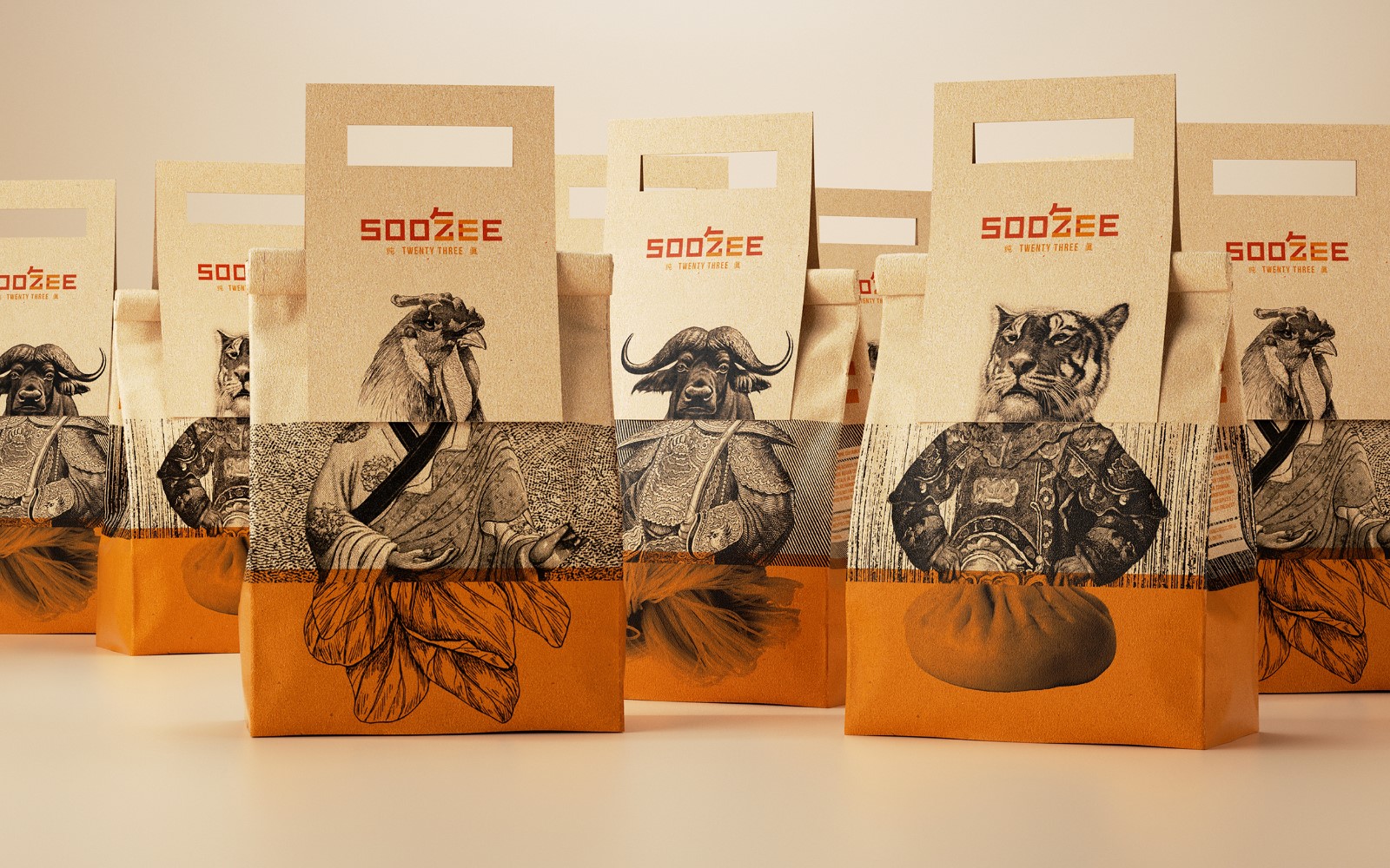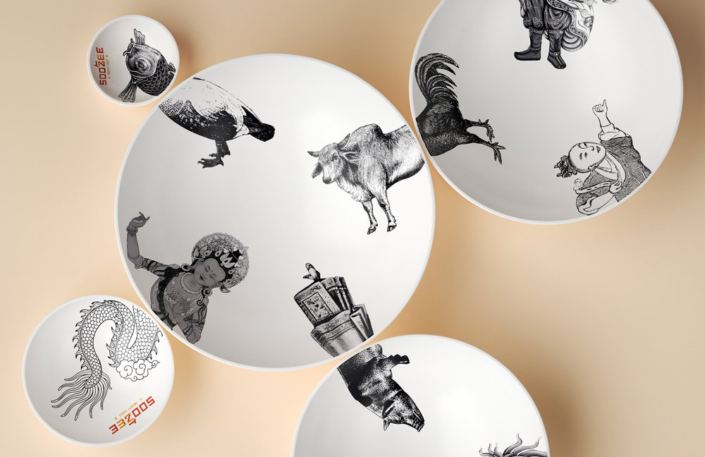 創(chuàng)作方法被要求以一個(gè)名字、標(biāo)志、身份創(chuàng)造、圖形、服裝、菜單、餐具、網(wǎng)站和包裝來讓Soo Zee 23的故事生機(jī)勃勃。Soo Zee成為一個(gè)多形式的人物,代表著23種草藥和香料混合在一起的藝術(shù),創(chuàng)造出一種你永遠(yuǎn)不會(huì)忘記的正宗牛肉面湯?!?/p>