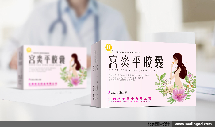 宮炎平膠囊字體設計:字體偏粗,使產(chǎn)品名更醒目,突出產(chǎn)品。