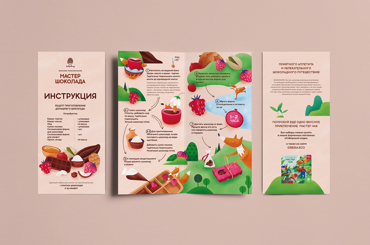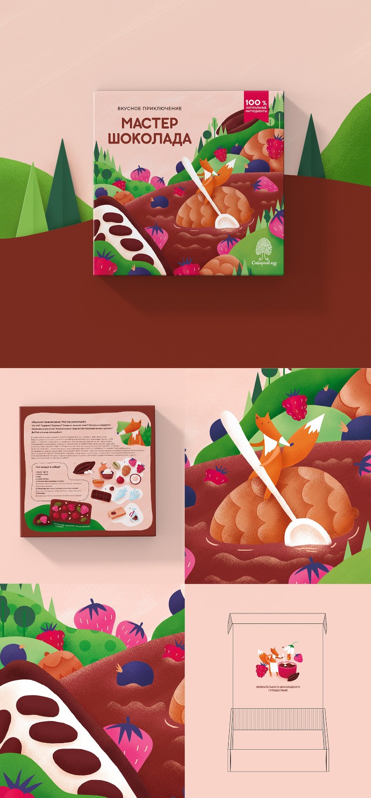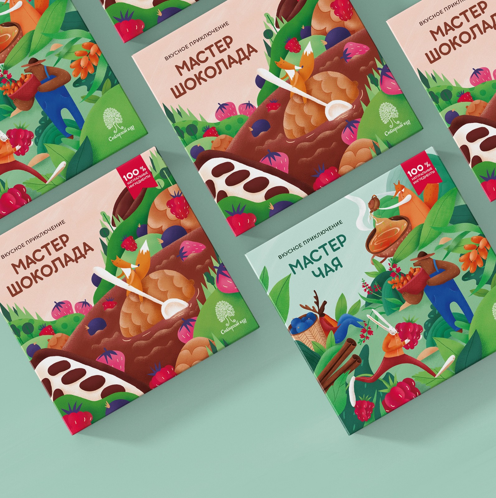 生態(tài)工廠“西伯利亞松”,俄羅斯最大的雪松堅果糖果生產(chǎn)商。該公司推出了一系列用于制作巧克力和茶的禮品套裝。這條線的名字是“美味的冒險”。這一套的名字是:“茶的主人”和“巧克力的主人”。設計應該是同一風格。使用風格化的動物,但它應該看起來時尚有趣。