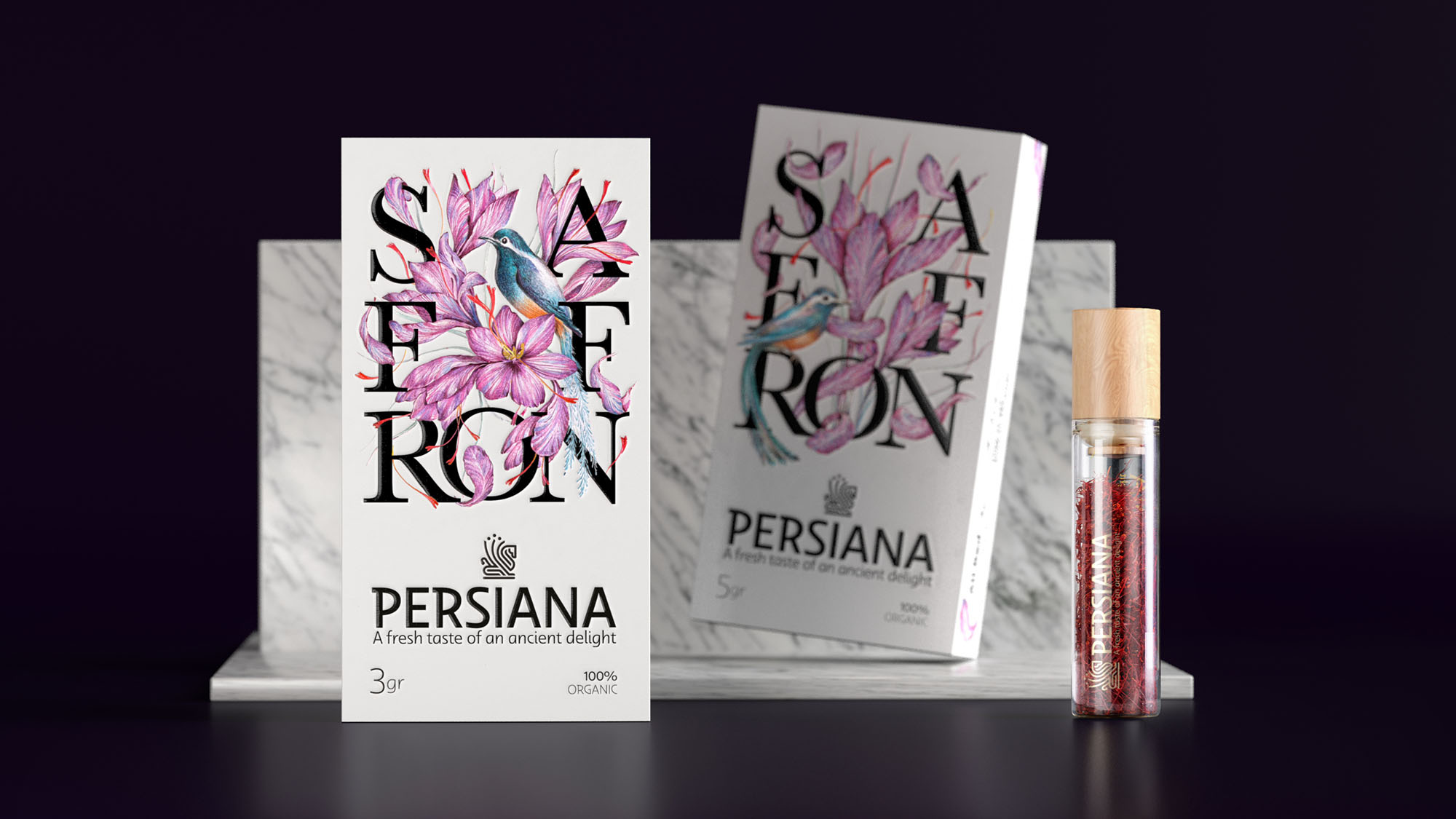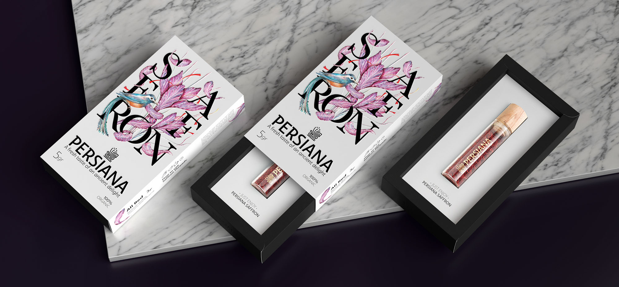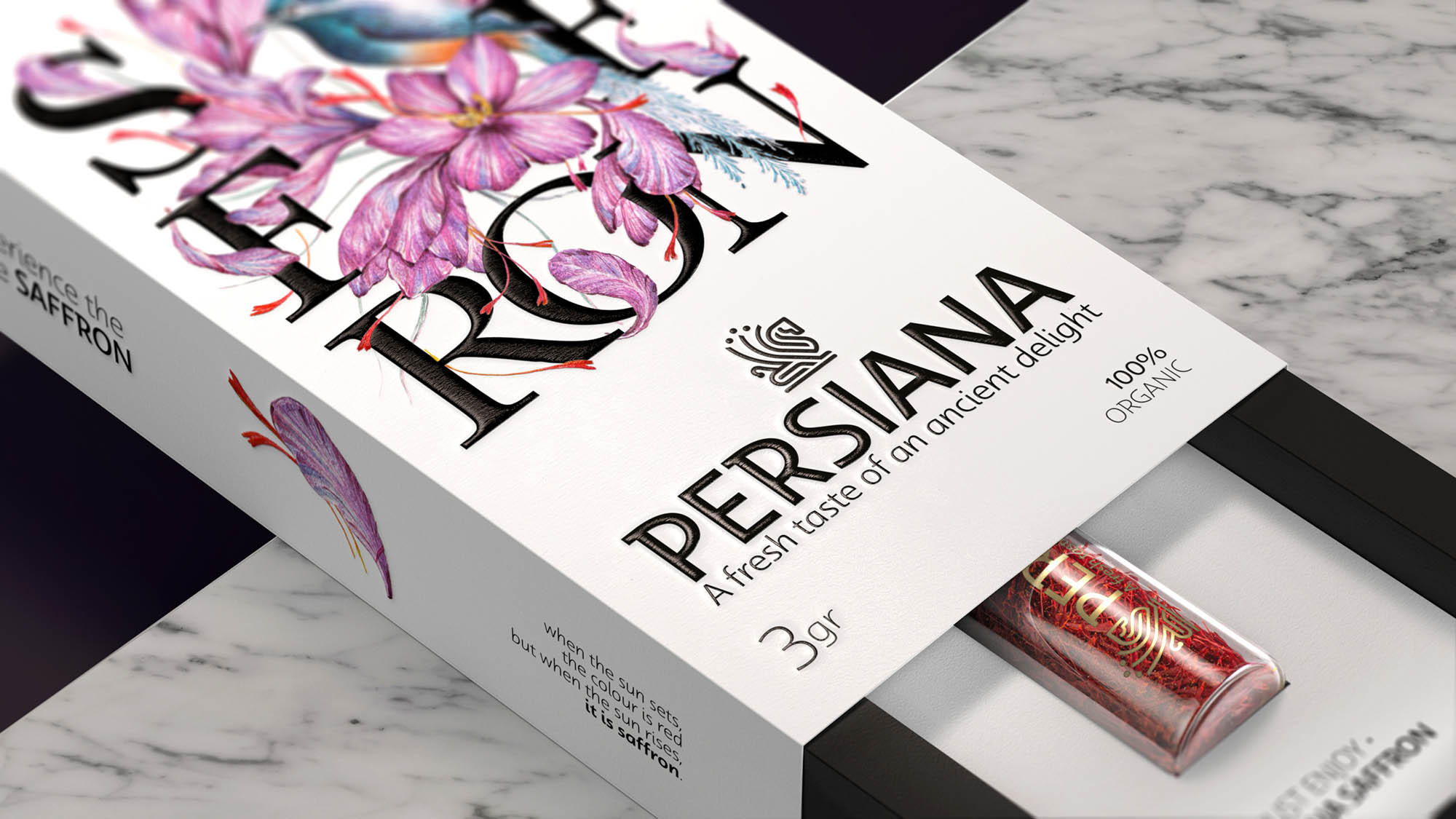 這個(gè)品牌藏紅花的一個(gè)區(qū)別在于它是有機(jī)的。換句話說(shuō),在任何階段都不使用化肥,從種植到收獲,從采摘到包裝。這種產(chǎn)品的有機(jī)性質(zhì)以及我們參觀原始藏紅花田的經(jīng)驗(yàn)使我們想起了一種被稱為“花鳥”的伊朗古老繪畫風(fēng)格,它由花鳥兩種元素組成,通常出現(xiàn)在傳統(tǒng)的伊朗筆架和其他裝飾物品上。這種繪畫風(fēng)格的元素是受自然、花朵和鳥類的啟發(fā)。
