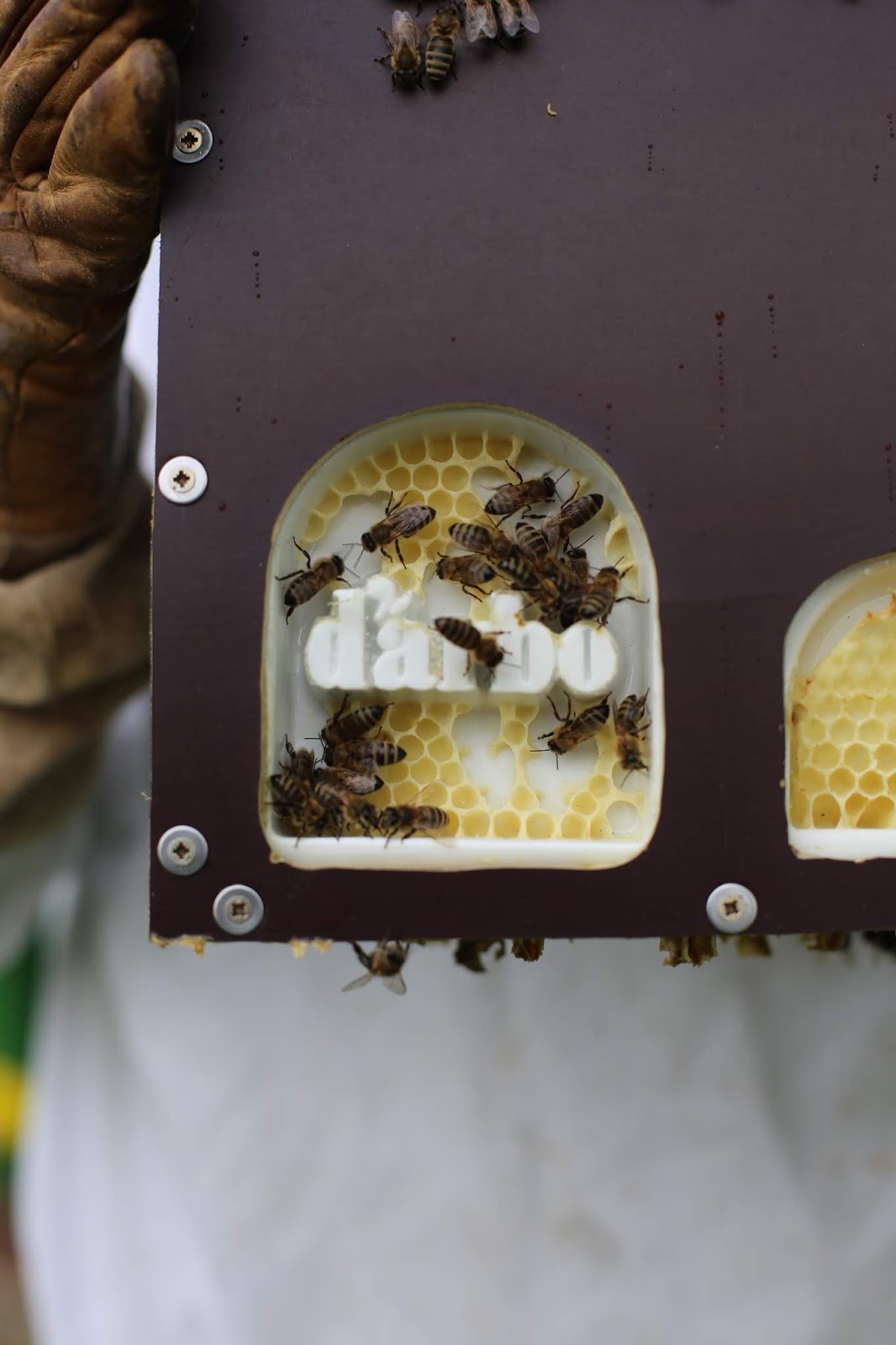 為了展示達(dá)爾博的本地蜂蜜,我們讓奧地利蜜蜂用自己的蜂蠟為蜂蜜罐制作了第一個(gè)有機(jī)標(biāo)簽。我們開(kāi)發(fā)了特殊的瓷罐,并交付給奧地利的養(yǎng)蜂人。蜂蜜罐被放入蜂箱中,這樣蜜蜂就可以制作有機(jī)標(biāo)簽。
