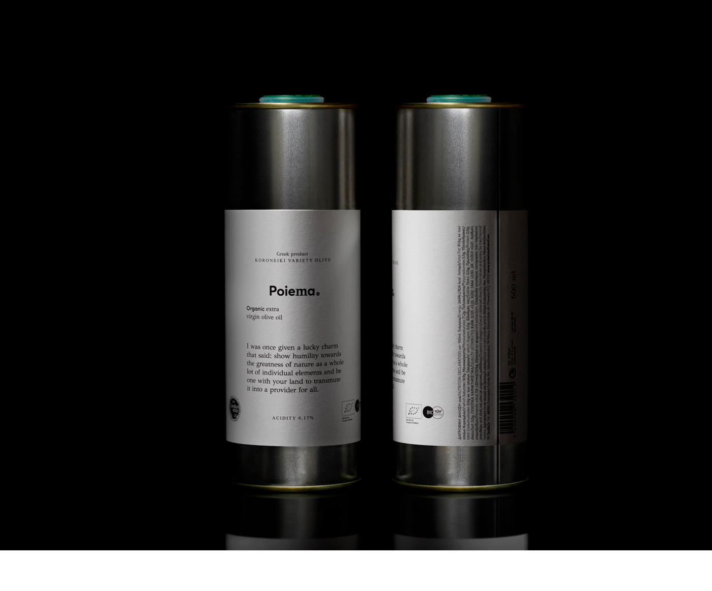 標(biāo)簽:有機(jī)特級初榨橄欖油 包裝設(shè)計(jì)和命名 Poiema 金屬錫罐 標(biāo)簽 膠版印刷 包裝基材 希臘橄欖油包裝設(shè)計(jì) 品牌產(chǎn)品包裝設(shè)計(jì)公司
