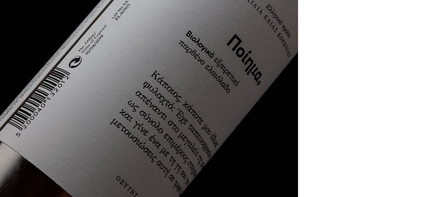 受希臘相關(guān)文獻(xiàn)參考的影響,我們最后得到了客戶寫的一首詩,這也是他關(guān)于自然和有機(jī)耕種的個(gè)人陳述。詩歌中的元素被解釋并轉(zhuǎn)化為布局。對版式進(jìn)行了相應(yīng)的處理:黑色經(jīng)典版印刷在白色吸水紙上。襯線和San Serif字母的組合表明新舊并存:特級初榨橄欖油的經(jīng)典價(jià)值與當(dāng)今使用的新生物栽培技術(shù)相吻合。