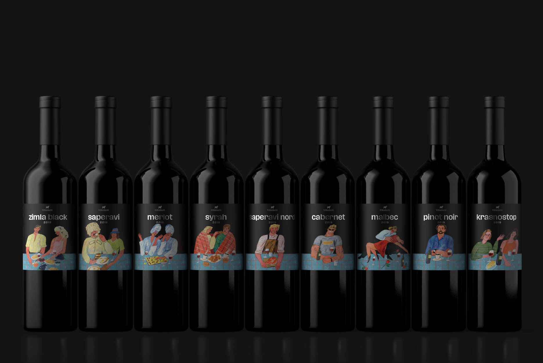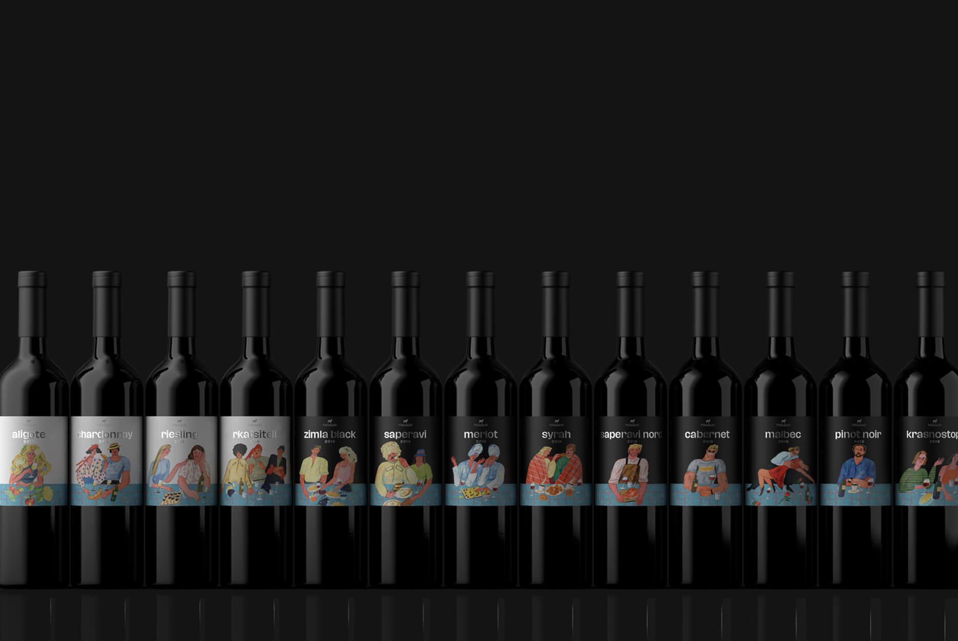 標簽上描繪的所有人-性格和喜好都不盡相同-反映了該葡萄酒的主要消費者。因此,克拉斯諾斯托夫(Krasnostop)變成了一個時髦的時髦,西拉(Syrah-一對享受溫暖浪漫夜晚的情侶)和梅洛(Merlot)-在一家溫泉浴場之后成為快樂的朋友。