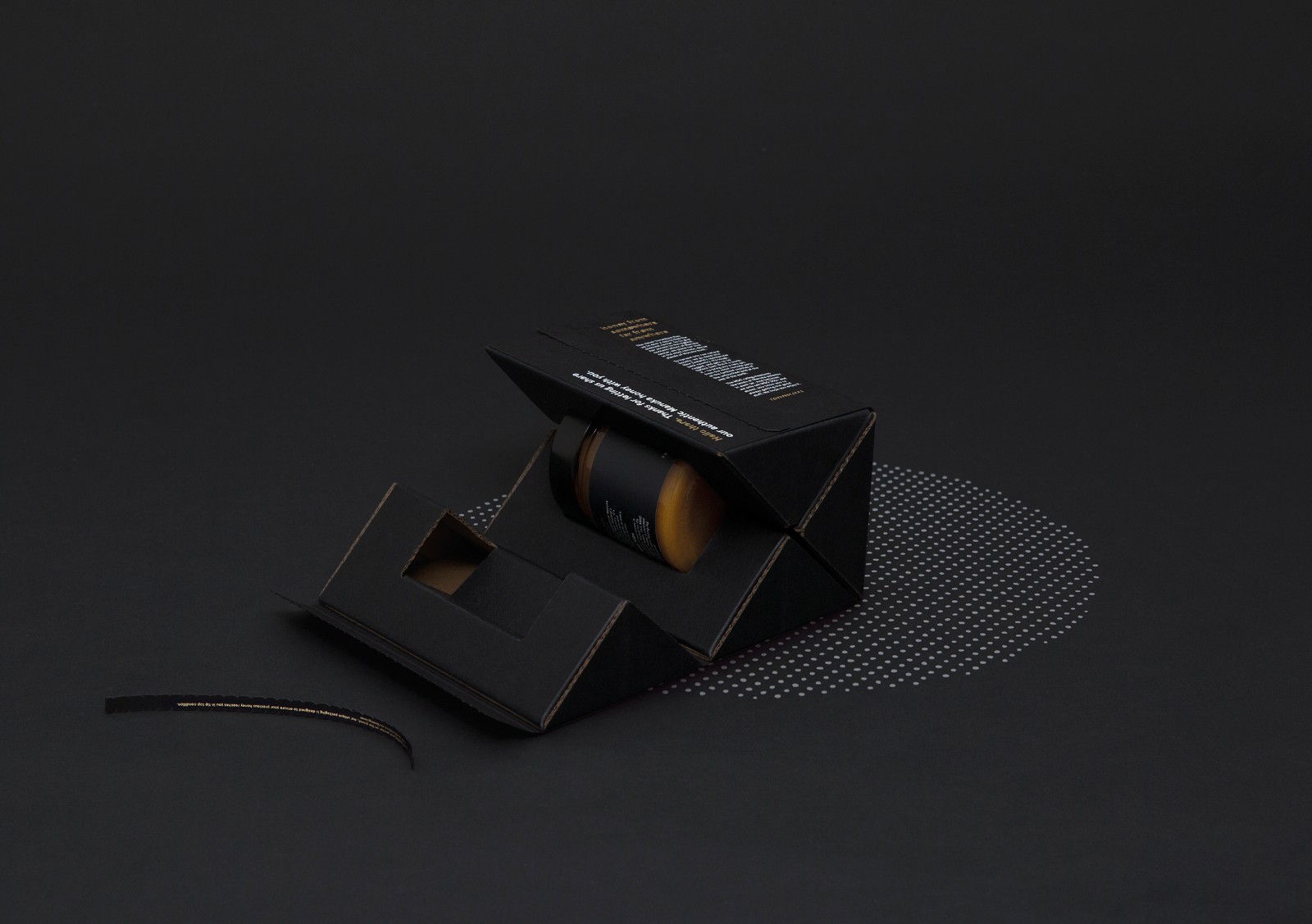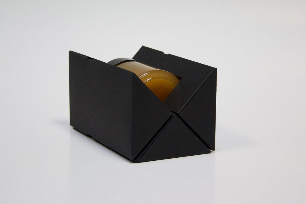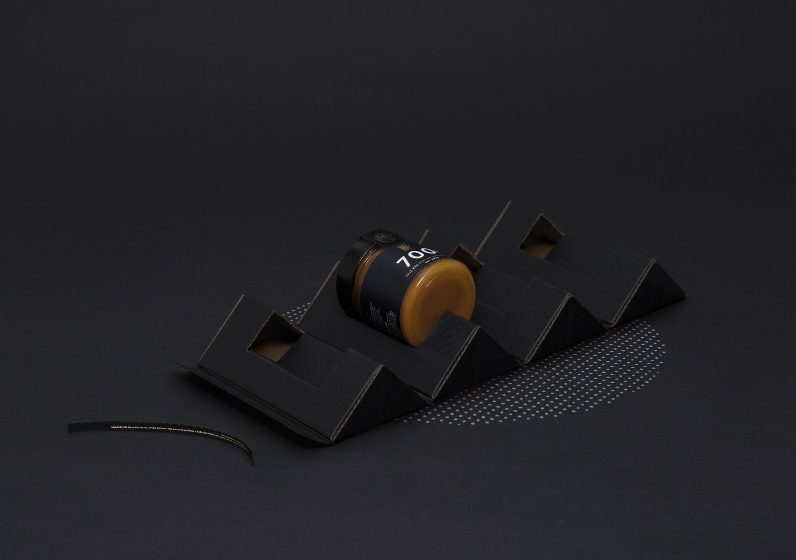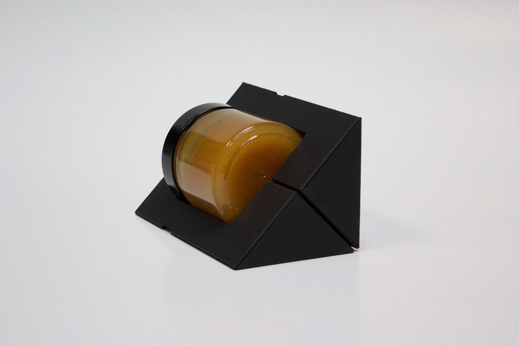 麥盧卡蜂蜜是一種蜂蜜,在新西蘭和澳大利亞新南威爾士北部的山坡、沿海地區(qū)、森林邊緣,生有一種叫做麥盧卡[也稱曼努卡](manuka)的紅茶樹。每逢初夏,它盛開的花朵會(huì)引得成群的蜜蜂來蜜源采集花蜜,以釀造獨(dú)具特色的麥盧卡蜂蜜?,F(xiàn)在分享的這一款麥盧卡蜂蜜TRUE MANUKA HONEY的包裝設(shè)計(jì),因?yàn)槭请娚啼N售產(chǎn)品,而且又是個(gè)玻璃瓶,對防撞要求比較高。設(shè)計(jì)形式區(qū)別于普通的蜂蜜設(shè)計(jì)形式,設(shè)計(jì)師巧妙通過瓦楞紙結(jié)構(gòu),做成一個(gè)三角度形狀,用四個(gè)三角形組成一個(gè)正方形的包裝,在里面通過模切做成一個(gè)緩沖區(qū),能夠很好的保護(hù)蜂蜜瓶。用黑色凸顯品質(zhì),黑白對比設(shè)計(jì)更加醒目,畫面設(shè)計(jì)非常簡潔,給人感覺高端大氣又環(huán)保。給人以厚重可信賴的高端感覺。配色產(chǎn)品“蜂蜜”本身的黃金色,這種色彩上的醒目對比很容易凸顯蜂蜜作為自然甜品的美味,而引發(fā)食欲,進(jìn)而引發(fā)購買行為。