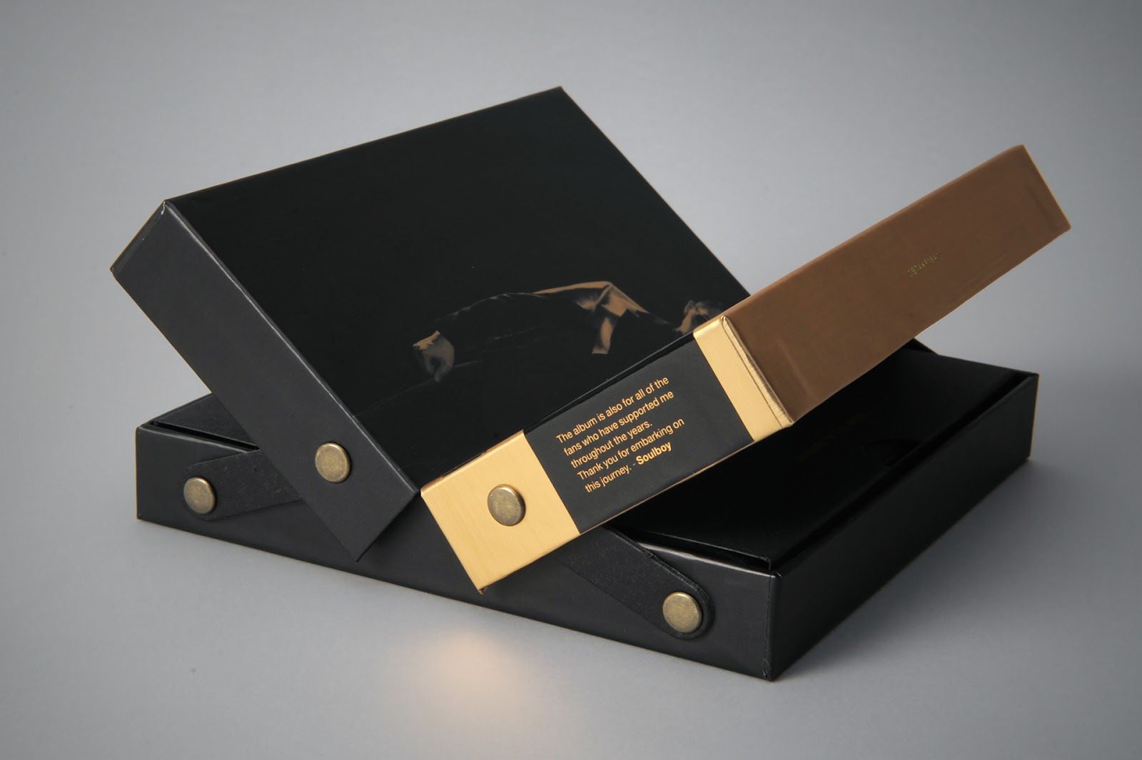 這款禮盒包裝工藝就相對(duì)更復(fù)雜,在表面用防蠟銅字,而且是采用凹凸雙層裱,工藝復(fù)雜,有燙金,旁邊還加金屬扣,黑色禮盒上更加體現(xiàn)高貴